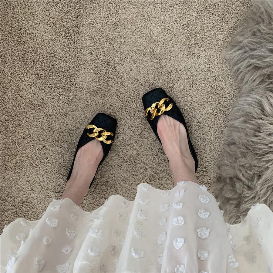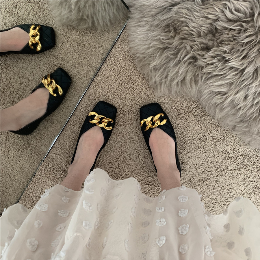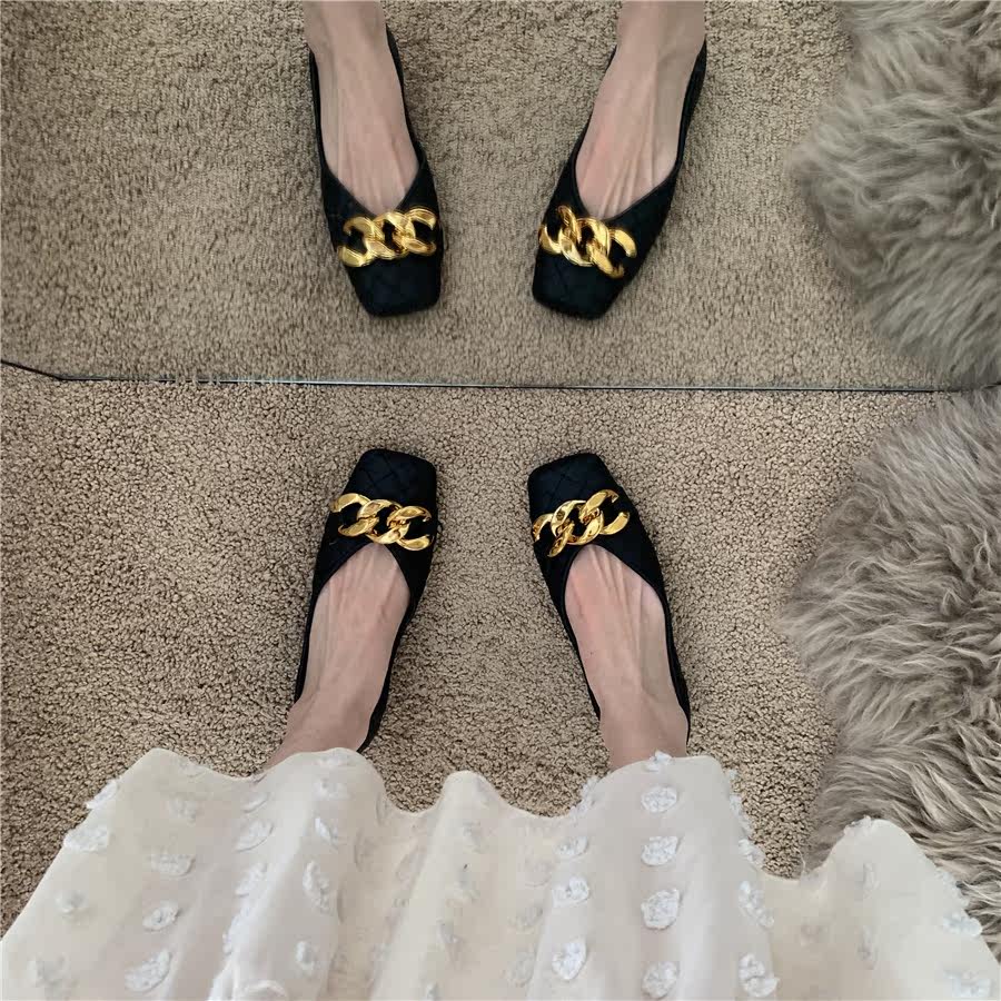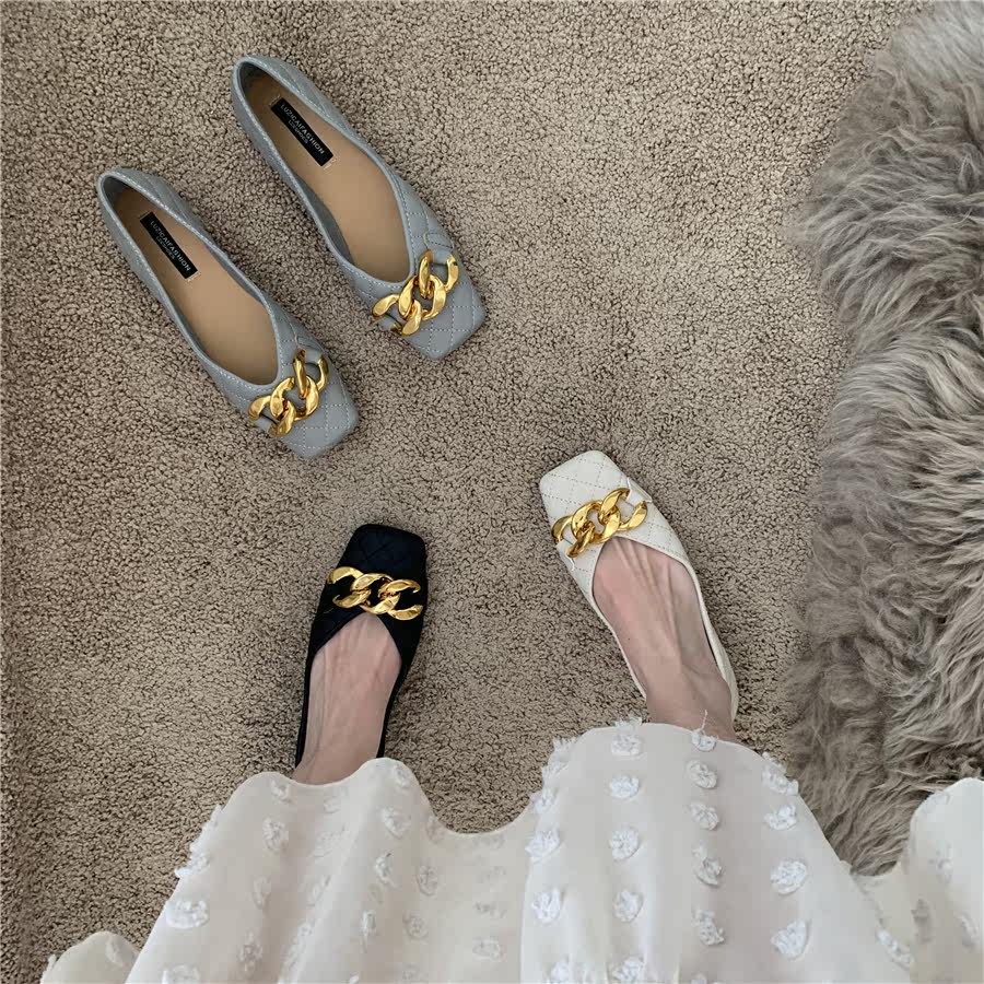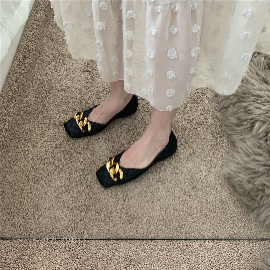 Плоская подошва цепь в английском стиле, весенняя летняя обувь с низким вырезом, в британском стиле, в стиле Шанель