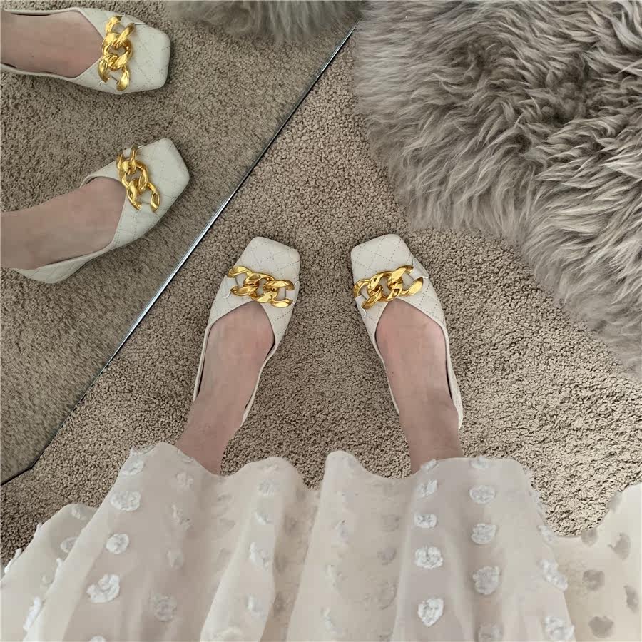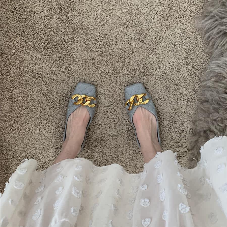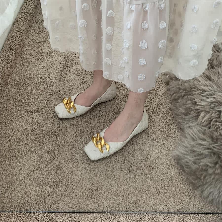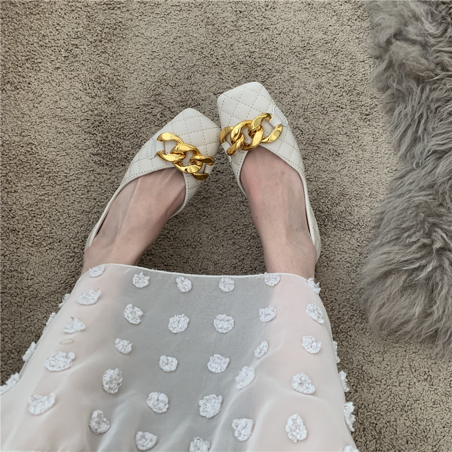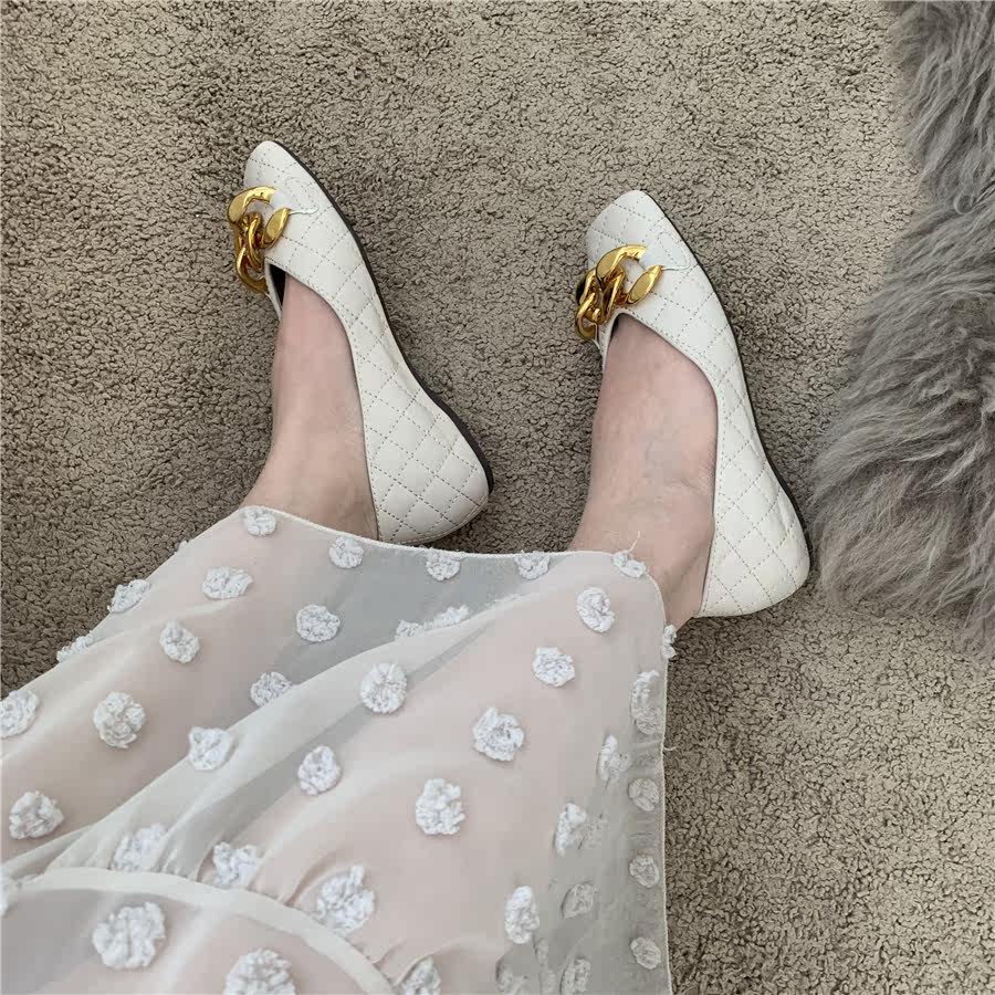 Плоская подошва цепь в английском стиле, весенняя летняя обувь с низким вырезом, в британском стиле, в стиле Шанель