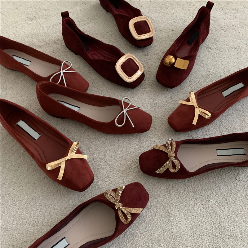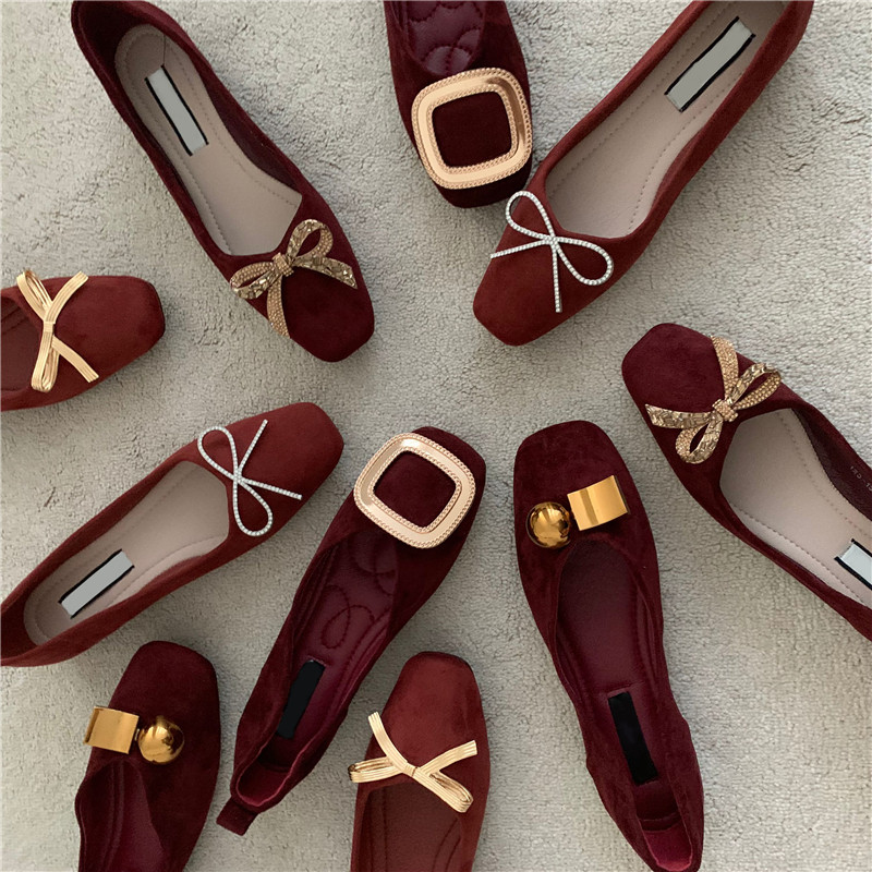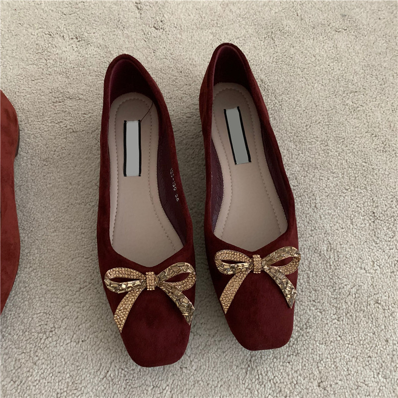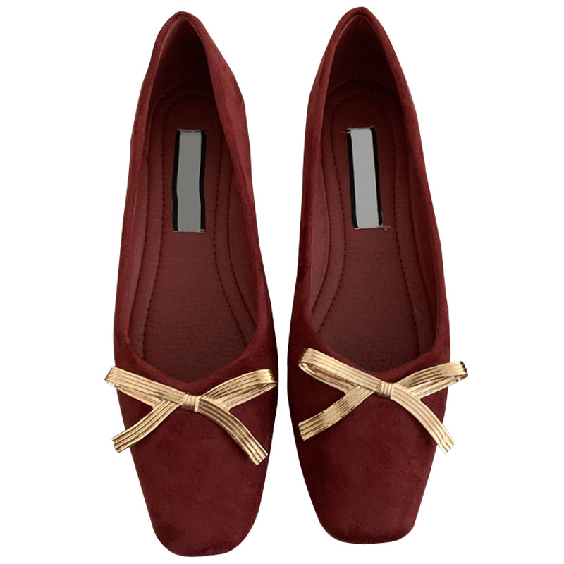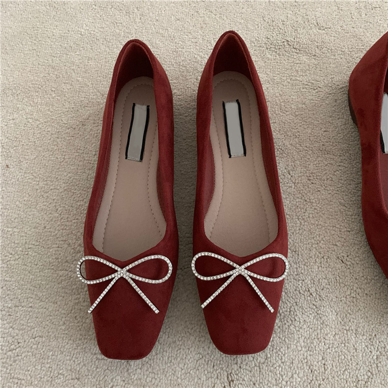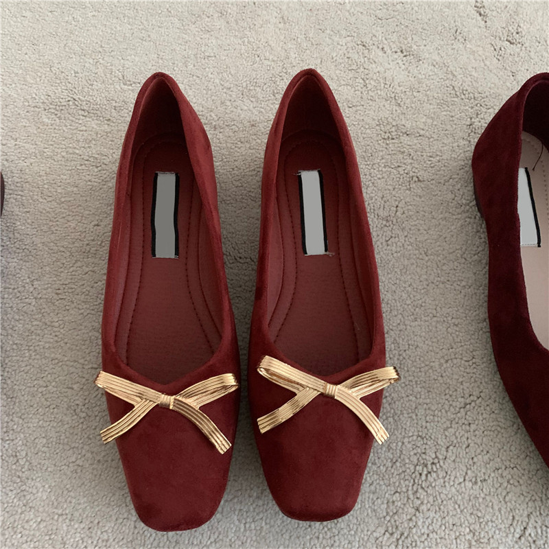 Обувь с бантиком, красные свадебные туфли для кожаной обуви, французский стиль