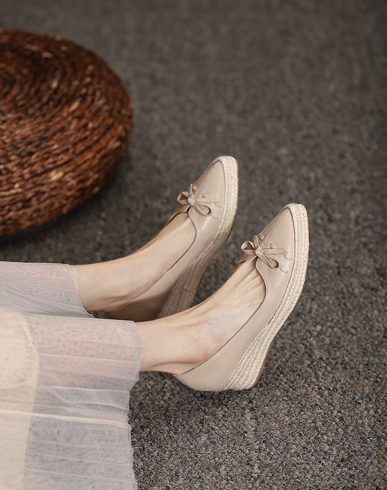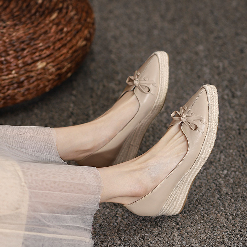 Весенняя соломенная дизайнерская обувь с заостренным носом с низким вырезом на платформе на высоком каблуке, тренд сезона, из натуральной кожи