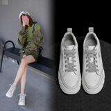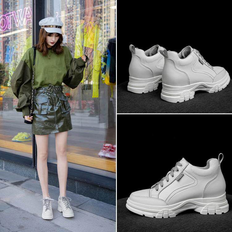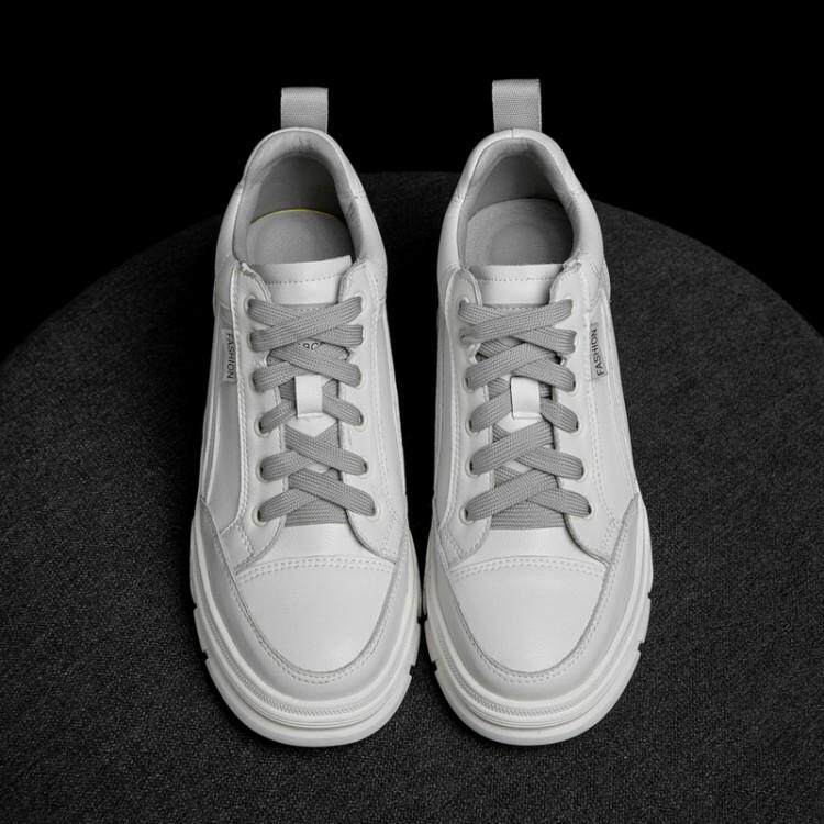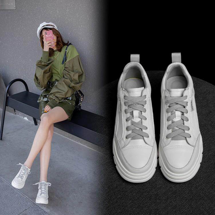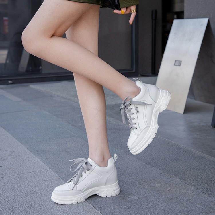 Белые туфли на толстой подошве для женщин, весенняя женская обувь больших размеров 40 на шнуровке 41 с усилением внутренней части 43 универсальная повседневная обувь на танкетке