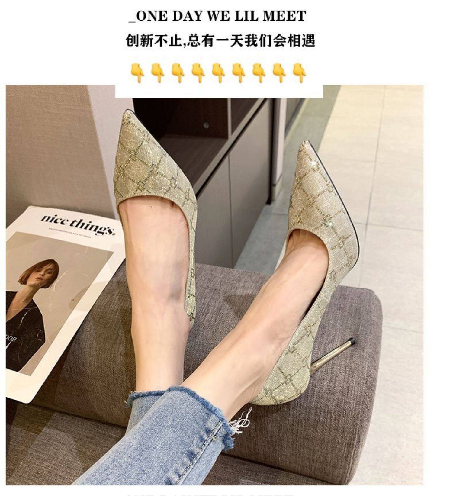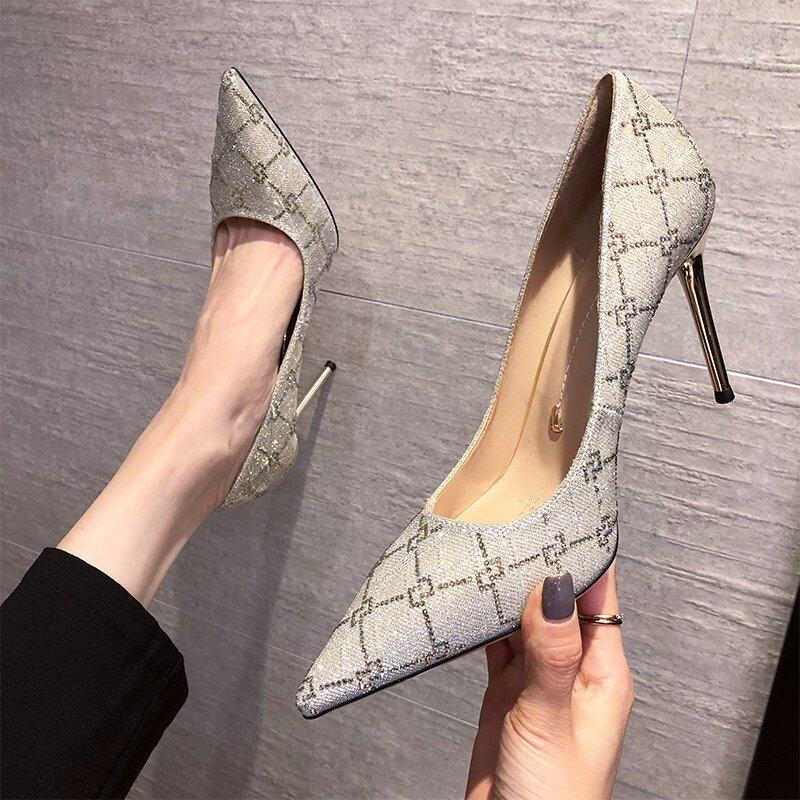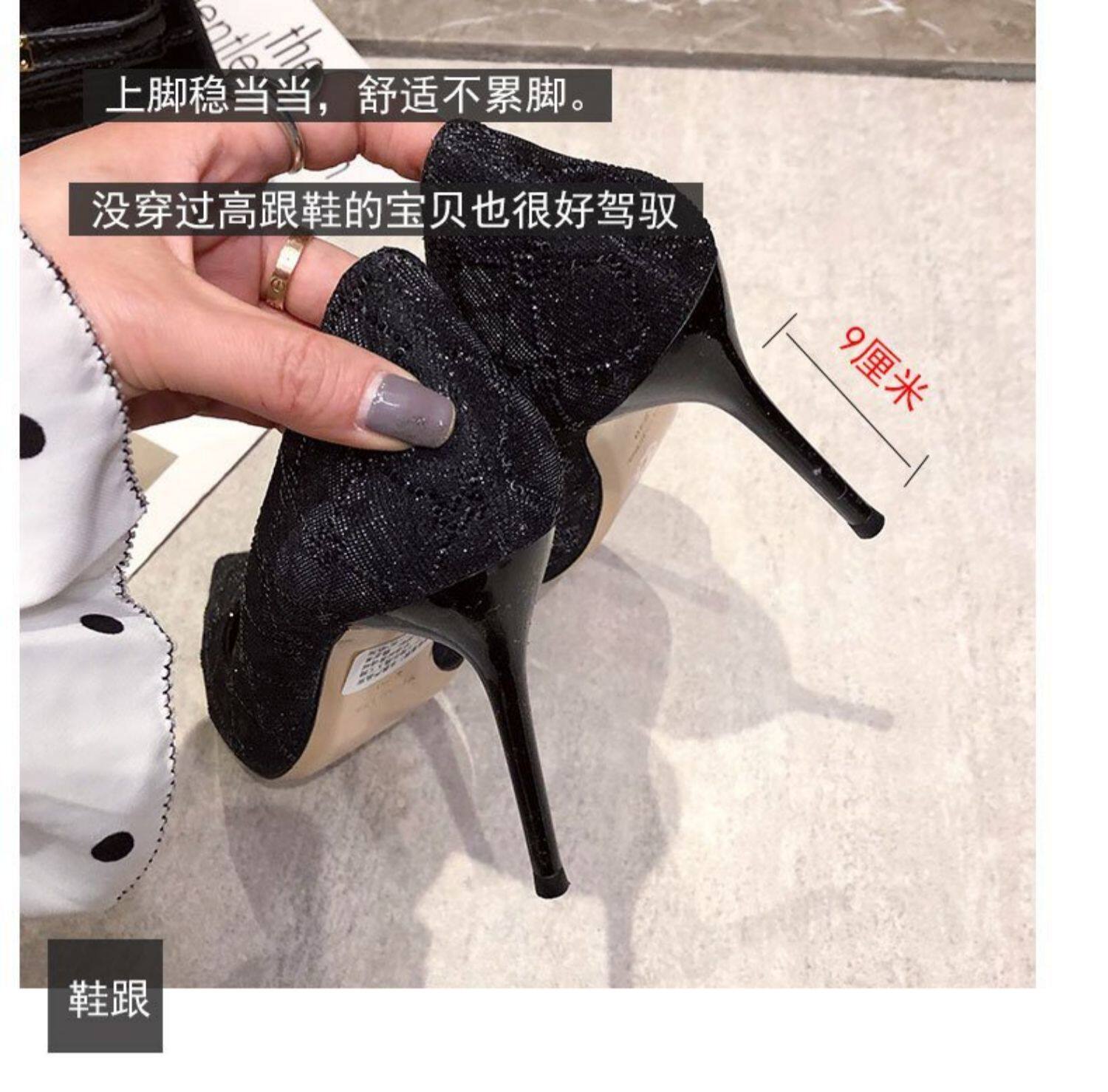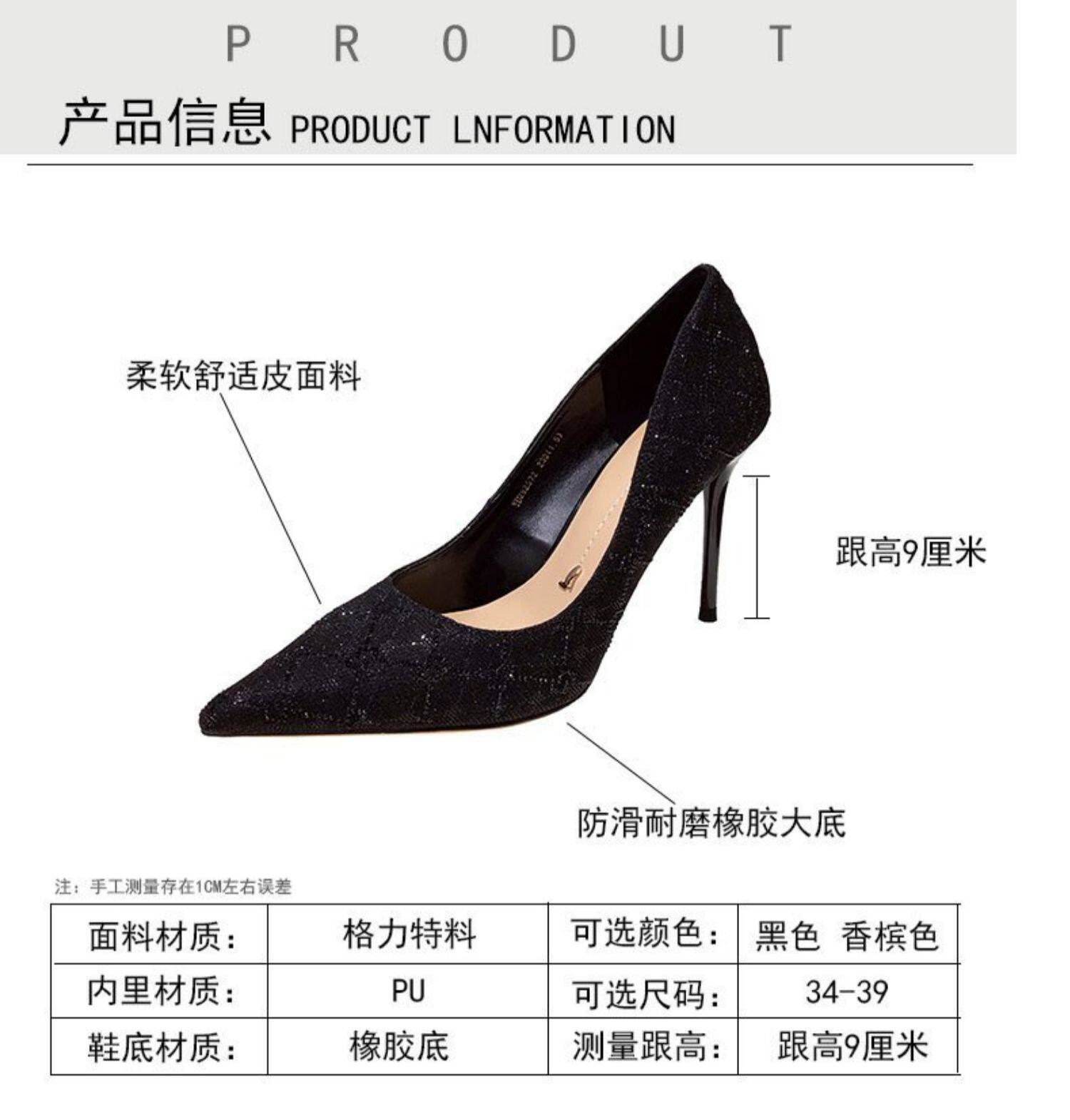 Черные весенние универсальные модные туфли на высоком каблуке с заостренным носом с низким вырезом