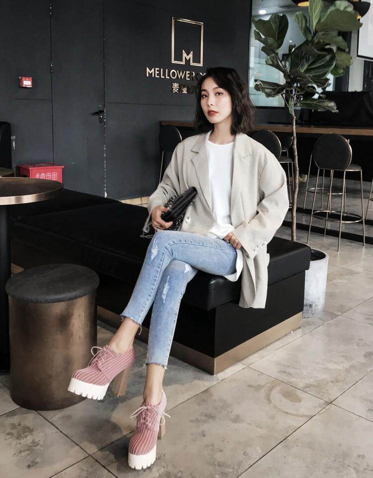 Демисезонные универсальные туфли на высоком каблуке, модель весна/осень 2021 года, тренд сезона, в корейском стиле