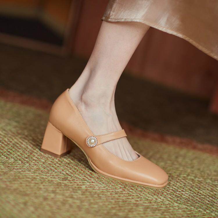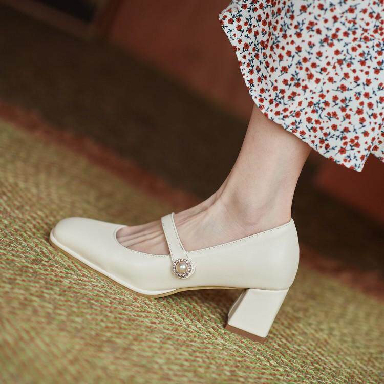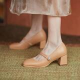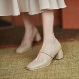 Fangtou Single обувь Женская ретро -мари высокая каблука 313233 Большой -размером 40 женских туфлей, толстая толстая нога 41 толстая каблука 43
