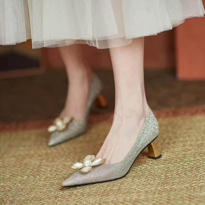 Белые дизайнерские туфли на высоком каблуке, в цветочек, французский стиль