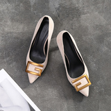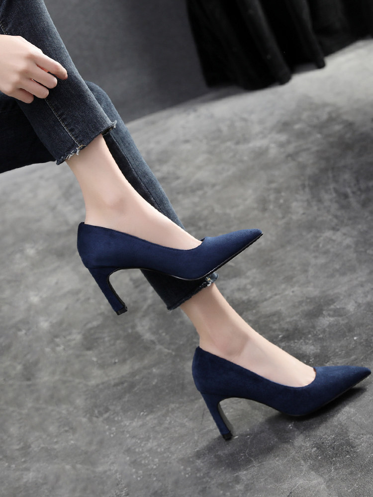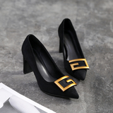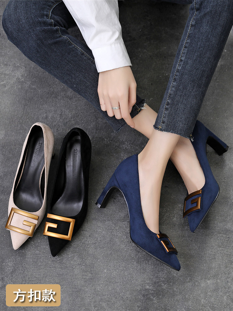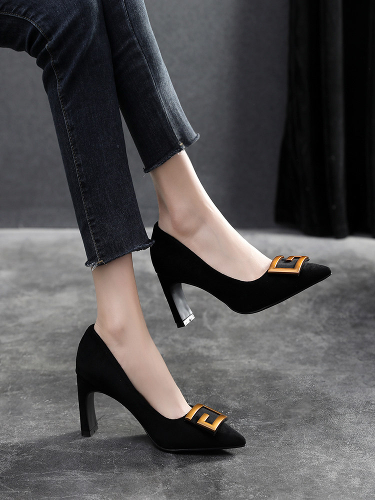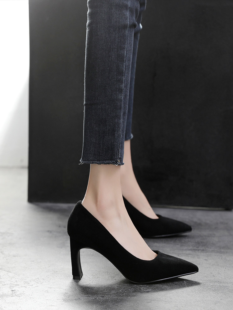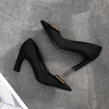 Рабочая черная обувь на высоком каблуке с заостренным носом, коллекция 2022, большой размер