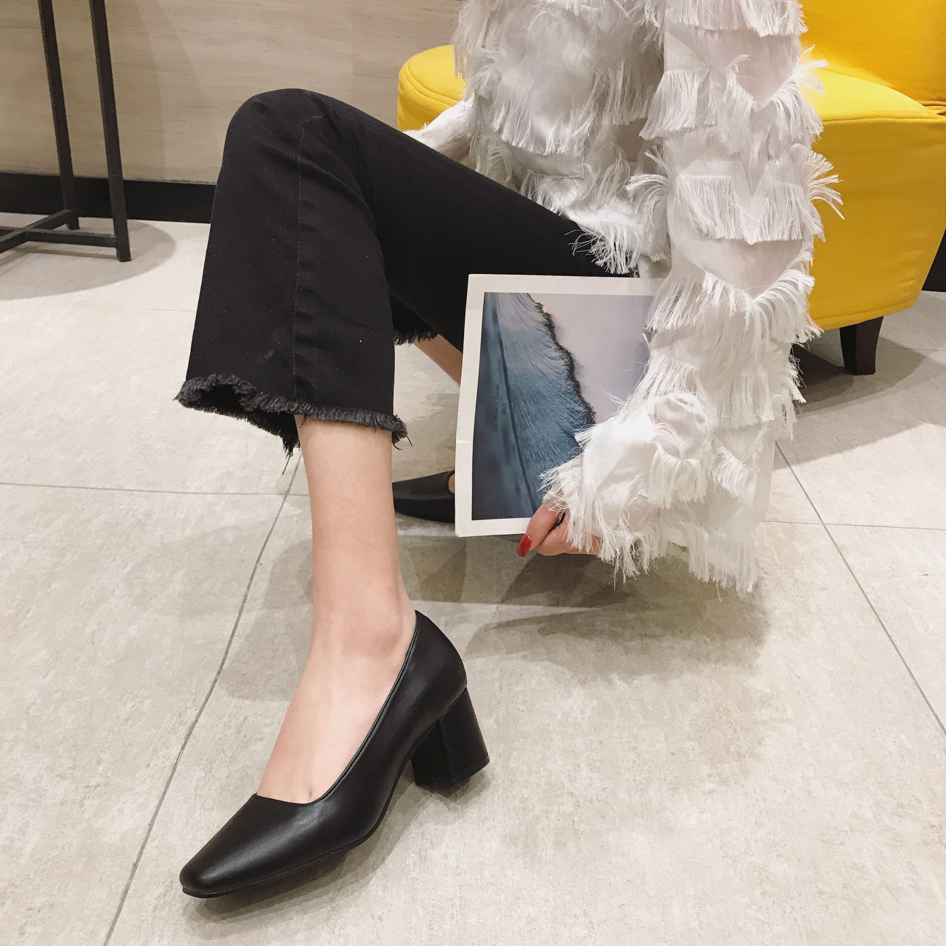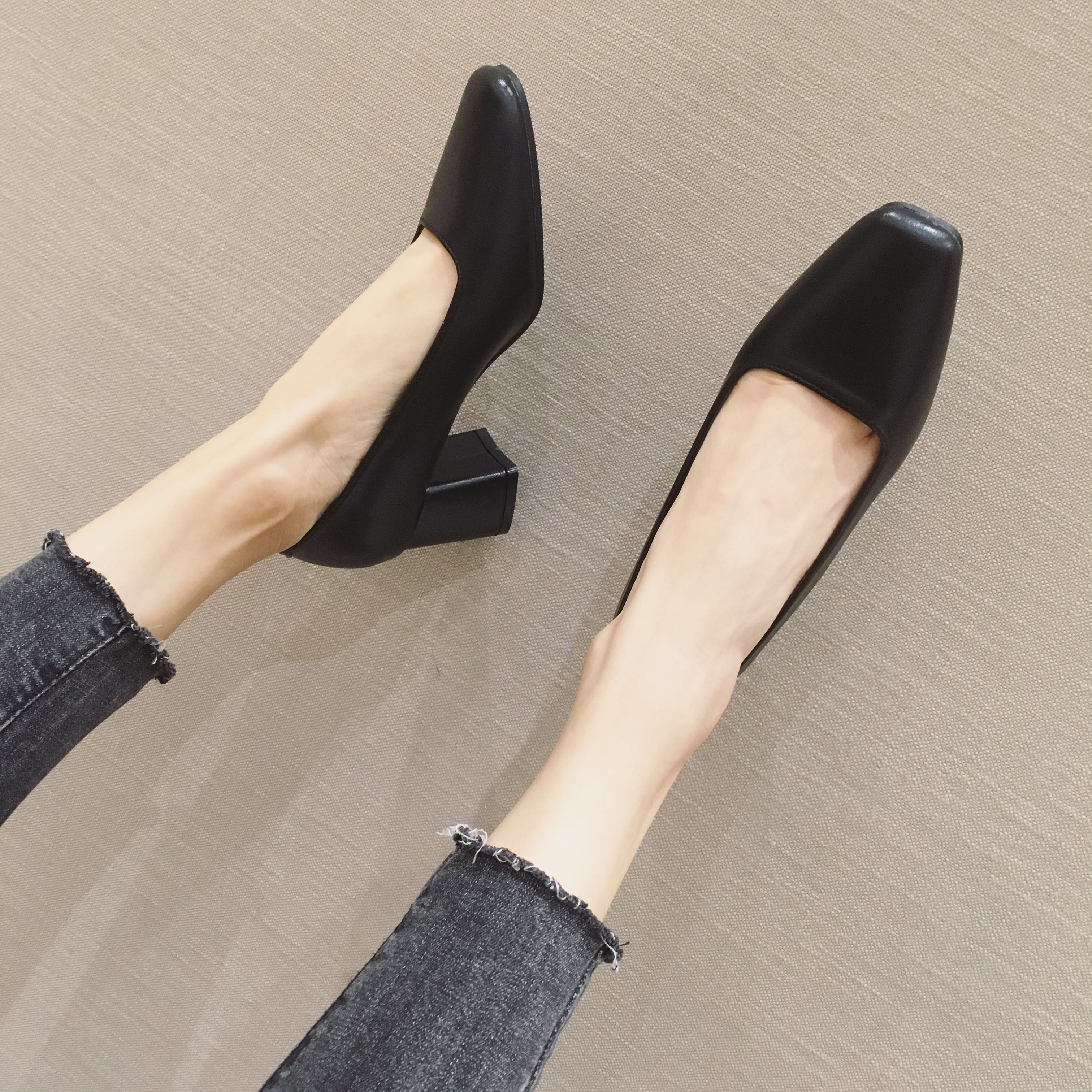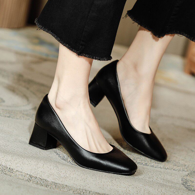 Весенняя черная рабочая обувь на высоком каблуке, 5см, против усталых ног