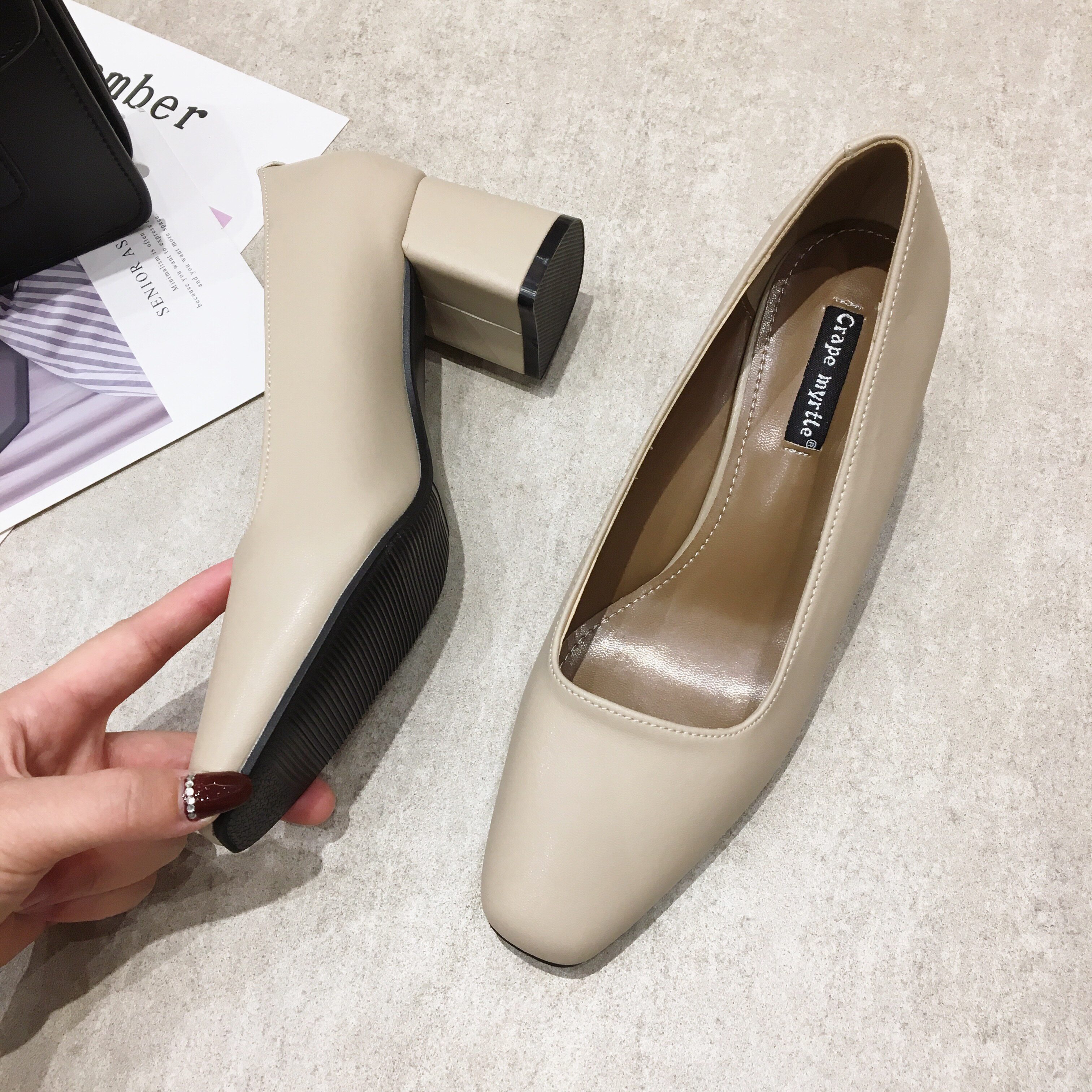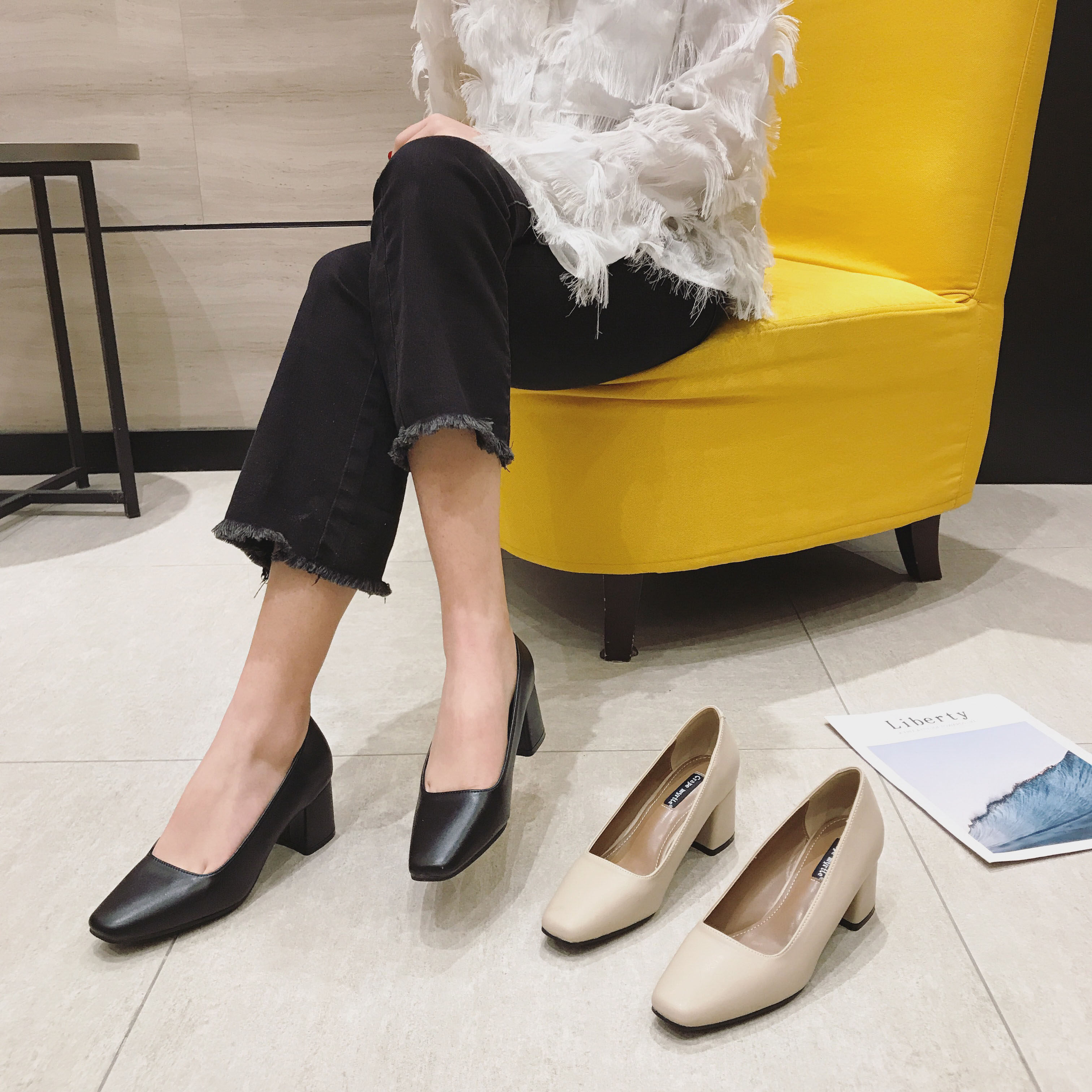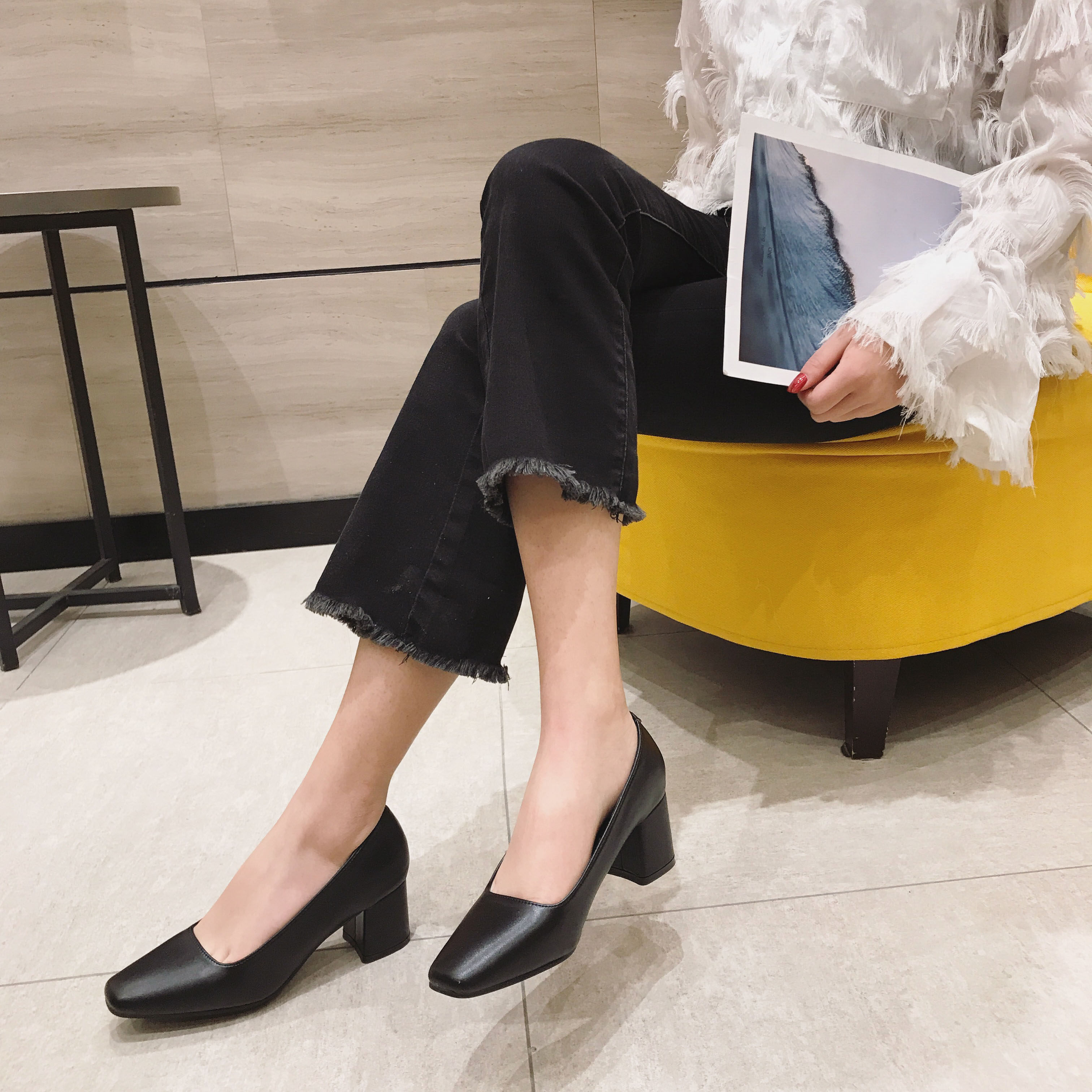 Весенняя черная рабочая обувь на высоком каблуке, 5см, против усталых ног