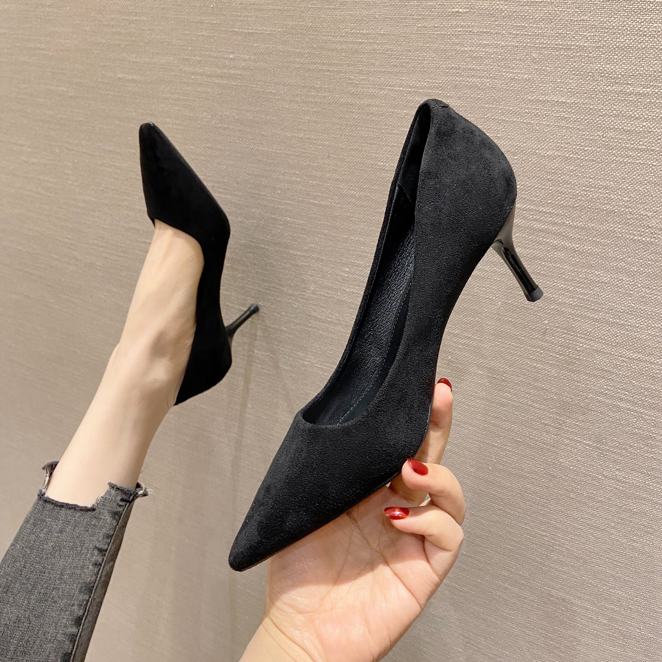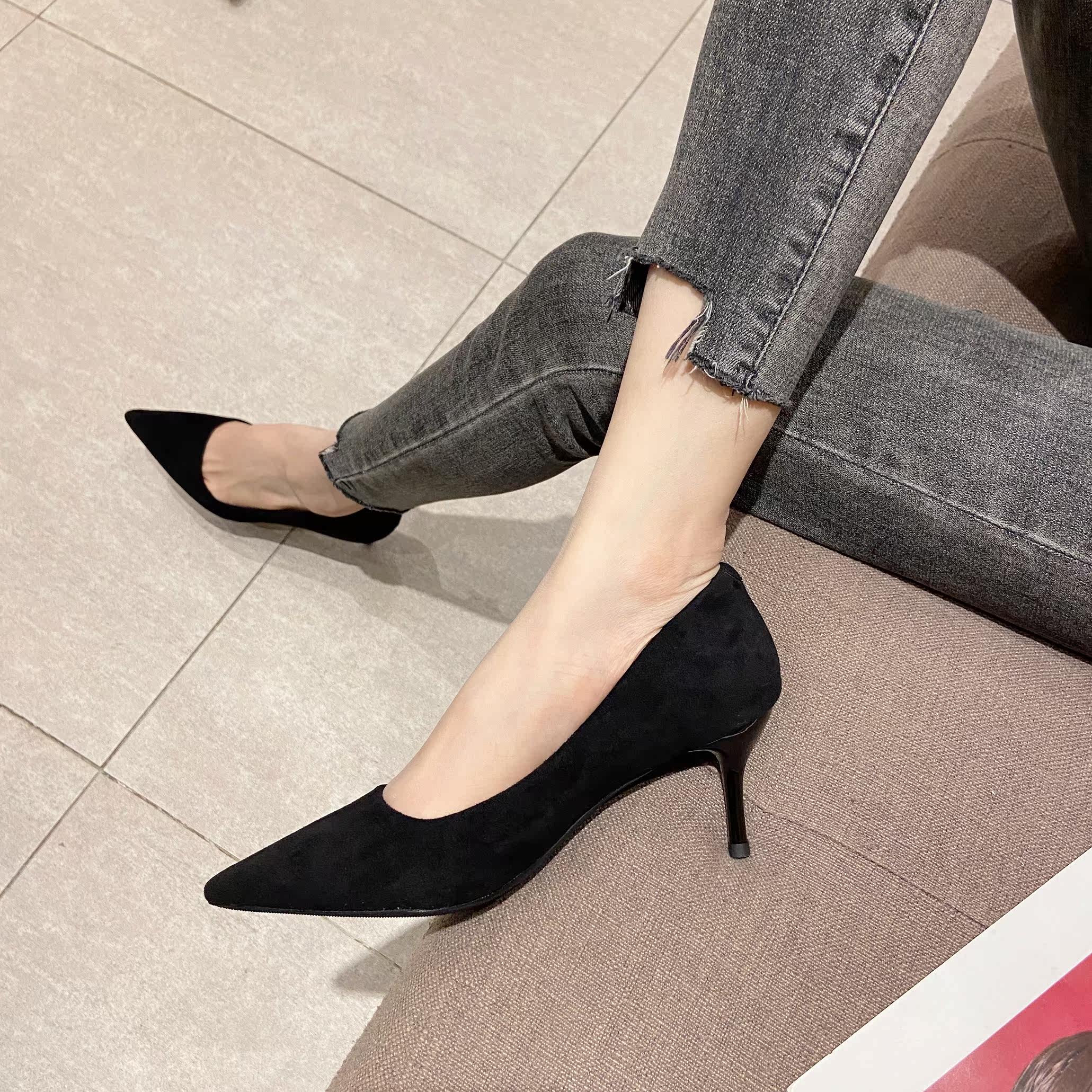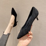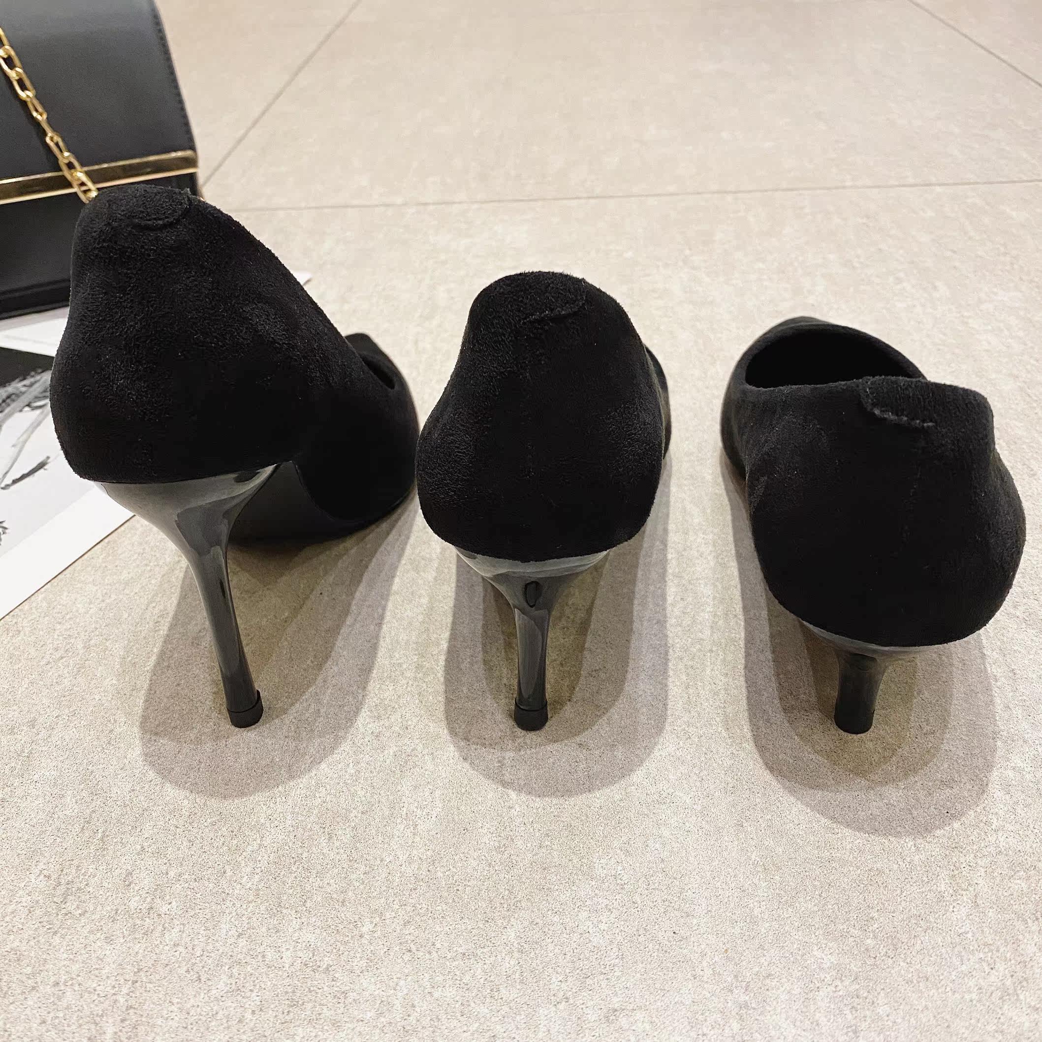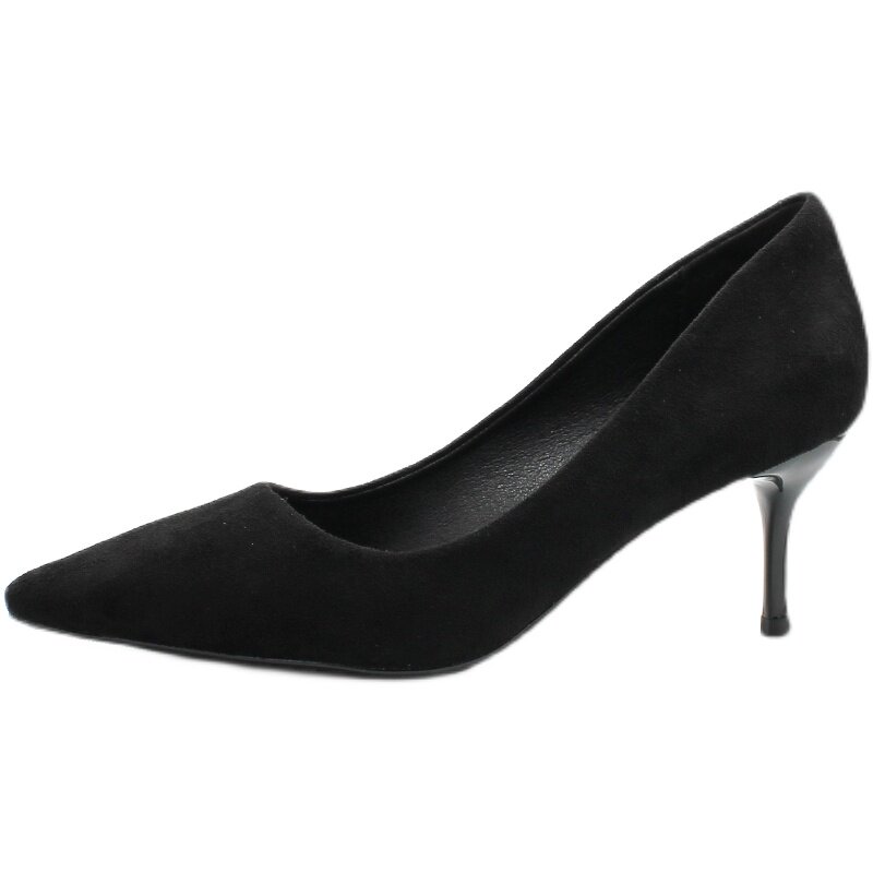 Комфортный классический костюм на высоком каблуке, черная обувь для кожаной обуви с заостренным носом