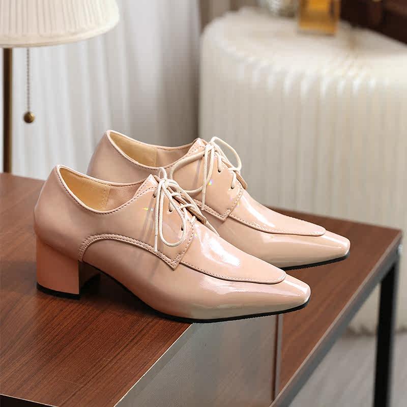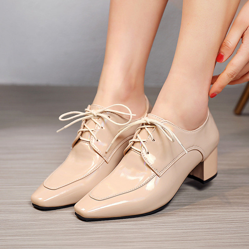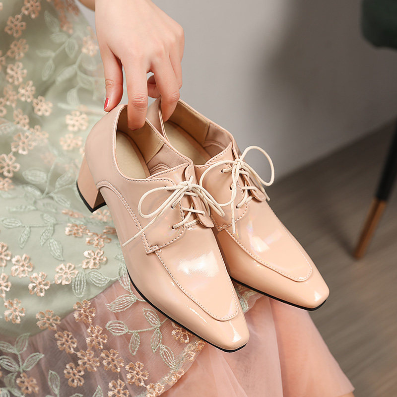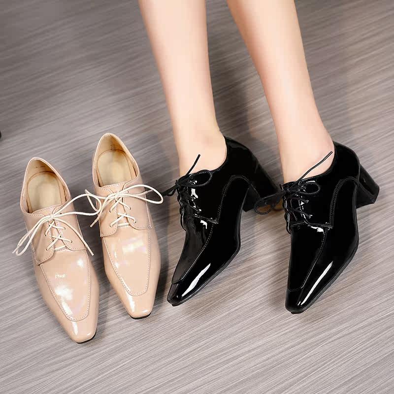 2021 Ранняя весна Новая черная британская женская женская обувь Патентная кожа глубоко рту