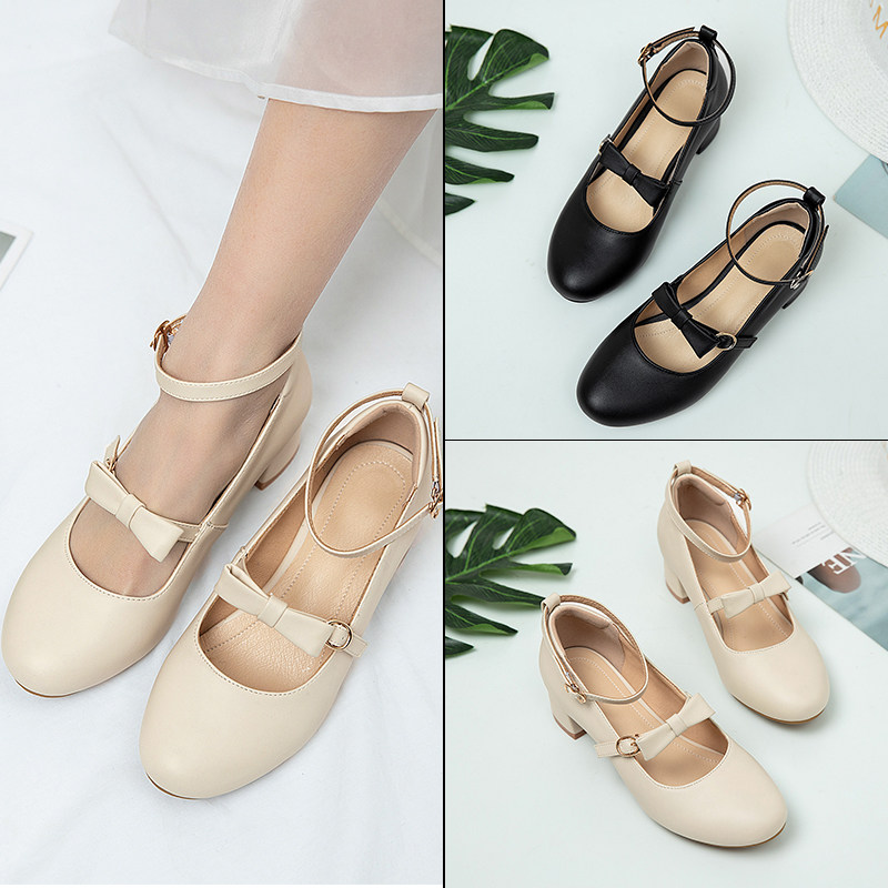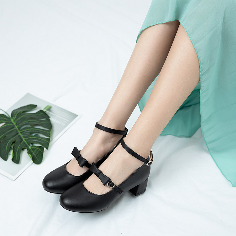 Весна Новая Фея Маленькая Свежая Боу Боу Популярные Слова, вычитающие Мэри Чжэнь Французская Толстая пятка Женская обувь одиночная обувь