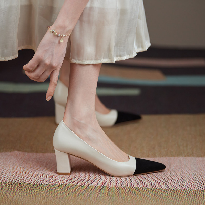 Обувь с заостренным носом на высоком каблуке, в стиле Шанель, 2021 года, из натуральной кожи