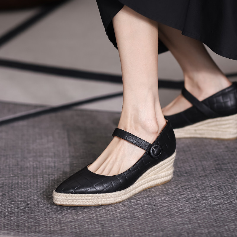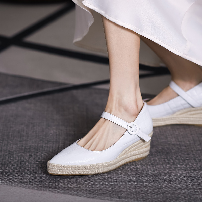 Летняя соломенная обувь на платформе на высоком каблуке, коллекция 2021, из натуральной кожи