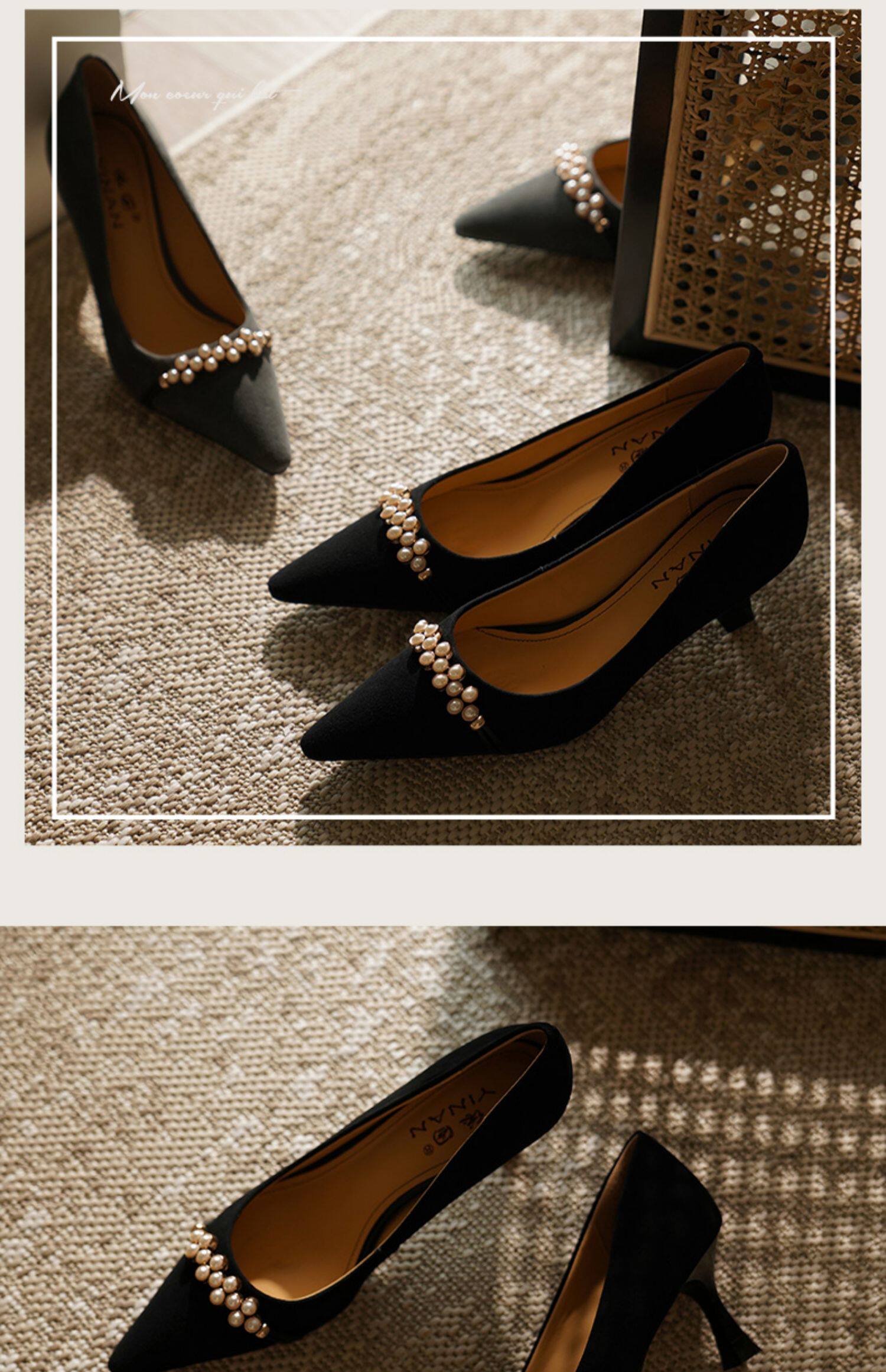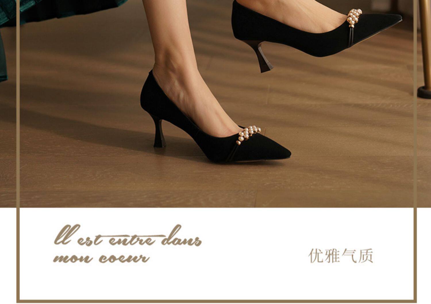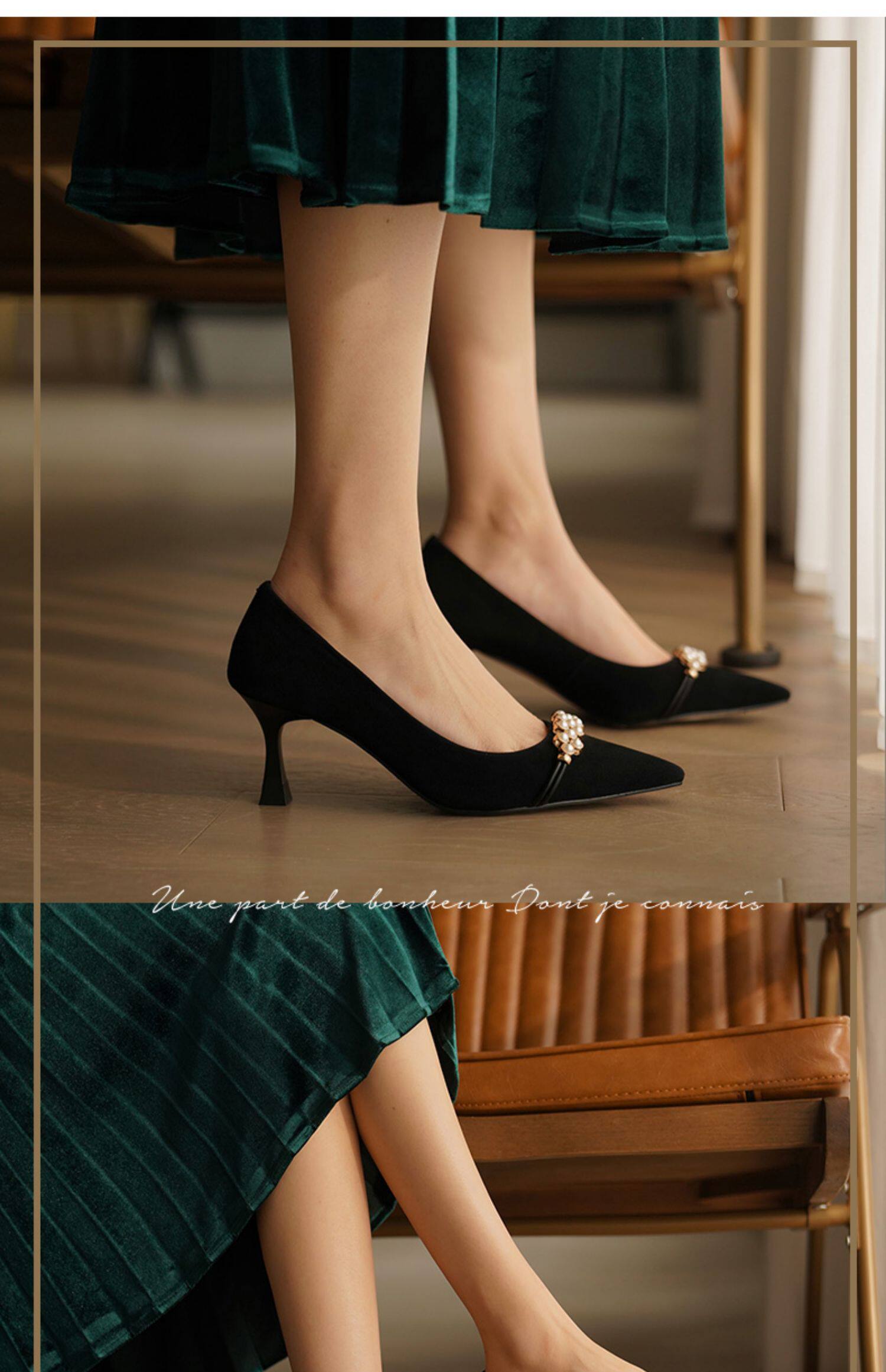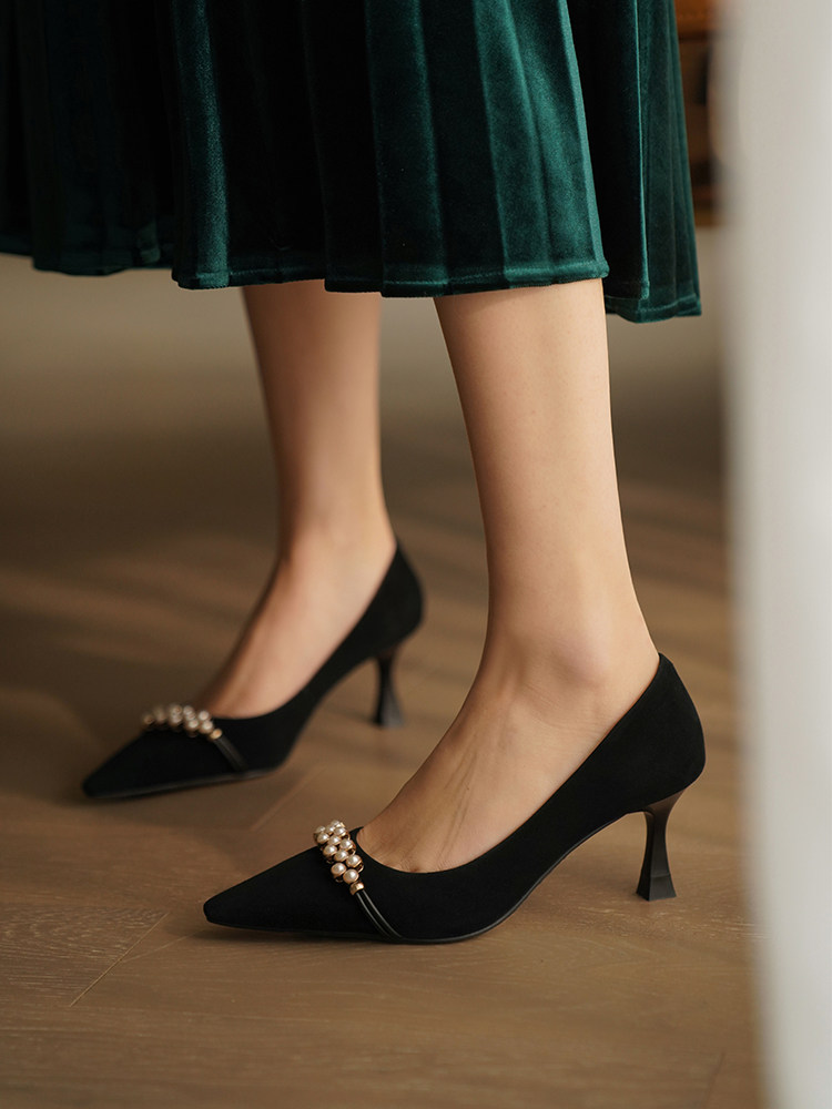 Рабочая черная весенняя обувь на высоком каблуке с заостренным носом, коллекция 2023, французский стиль