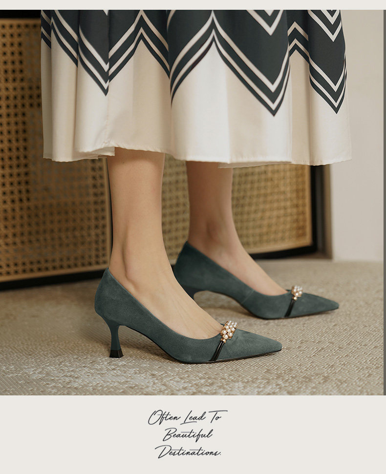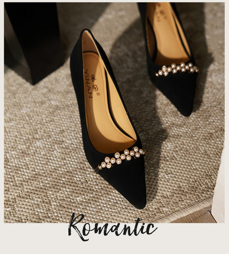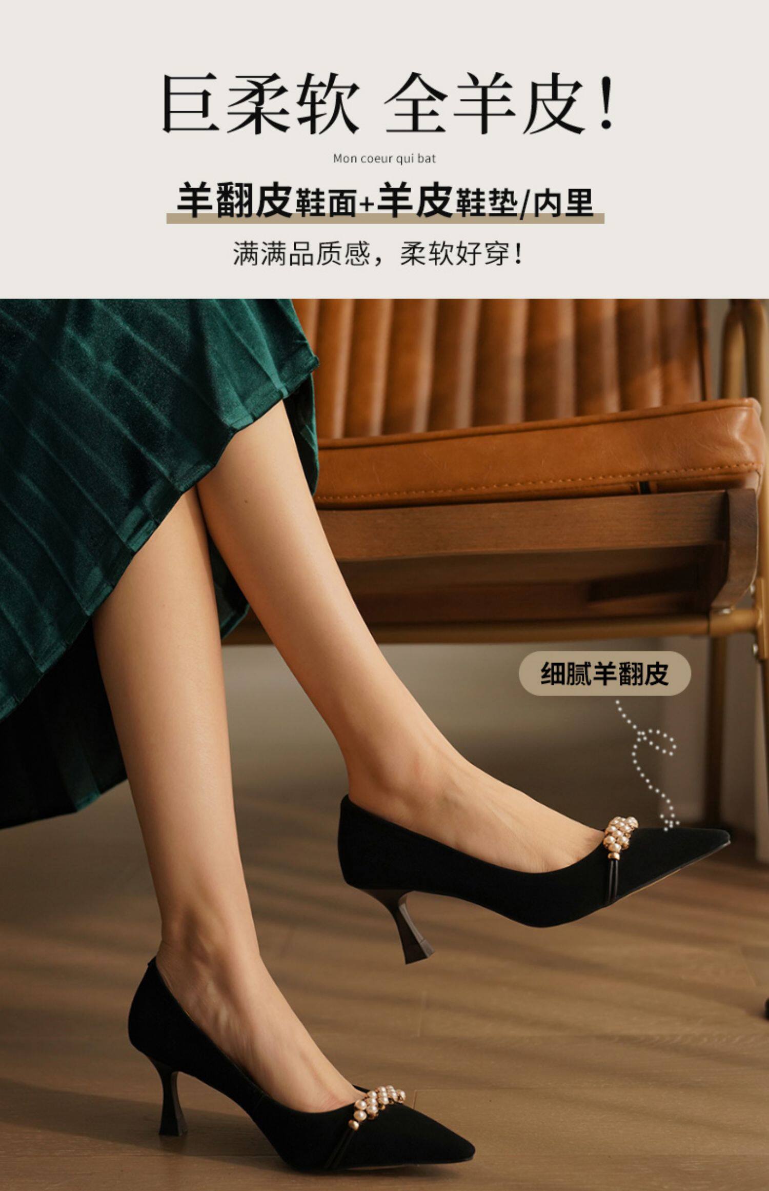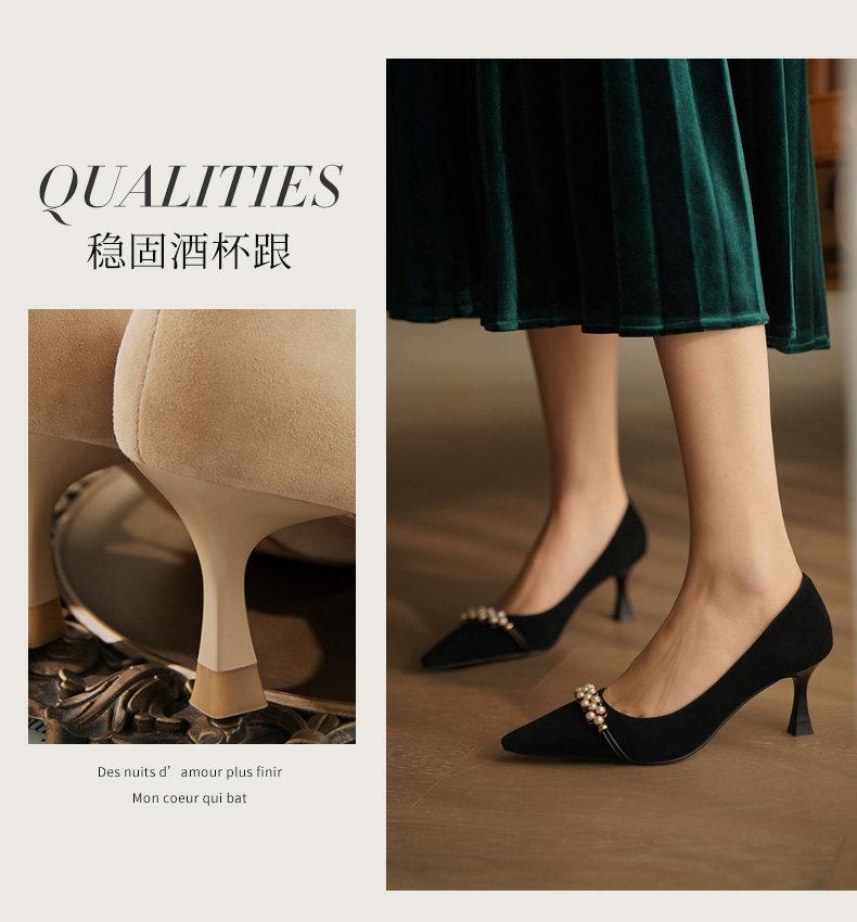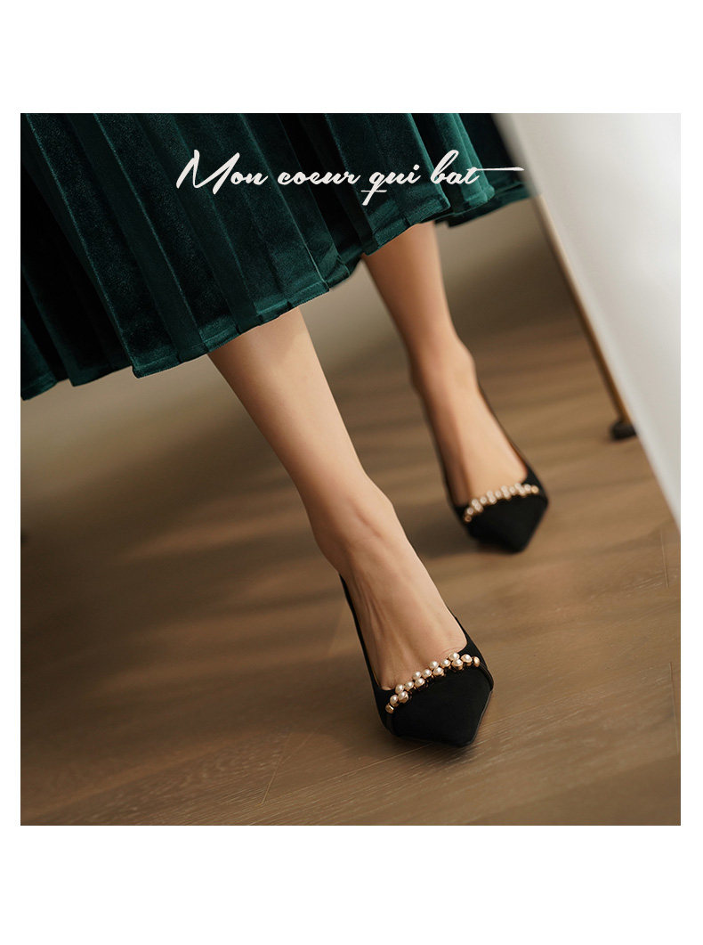 Рабочая черная весенняя обувь на высоком каблуке с заостренным носом, коллекция 2023, французский стиль