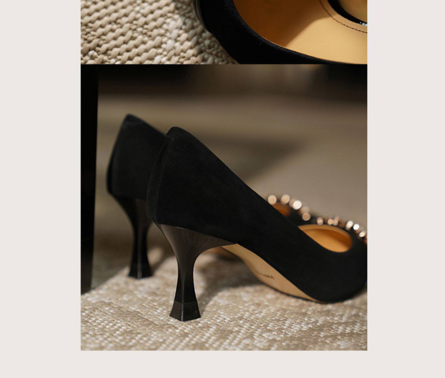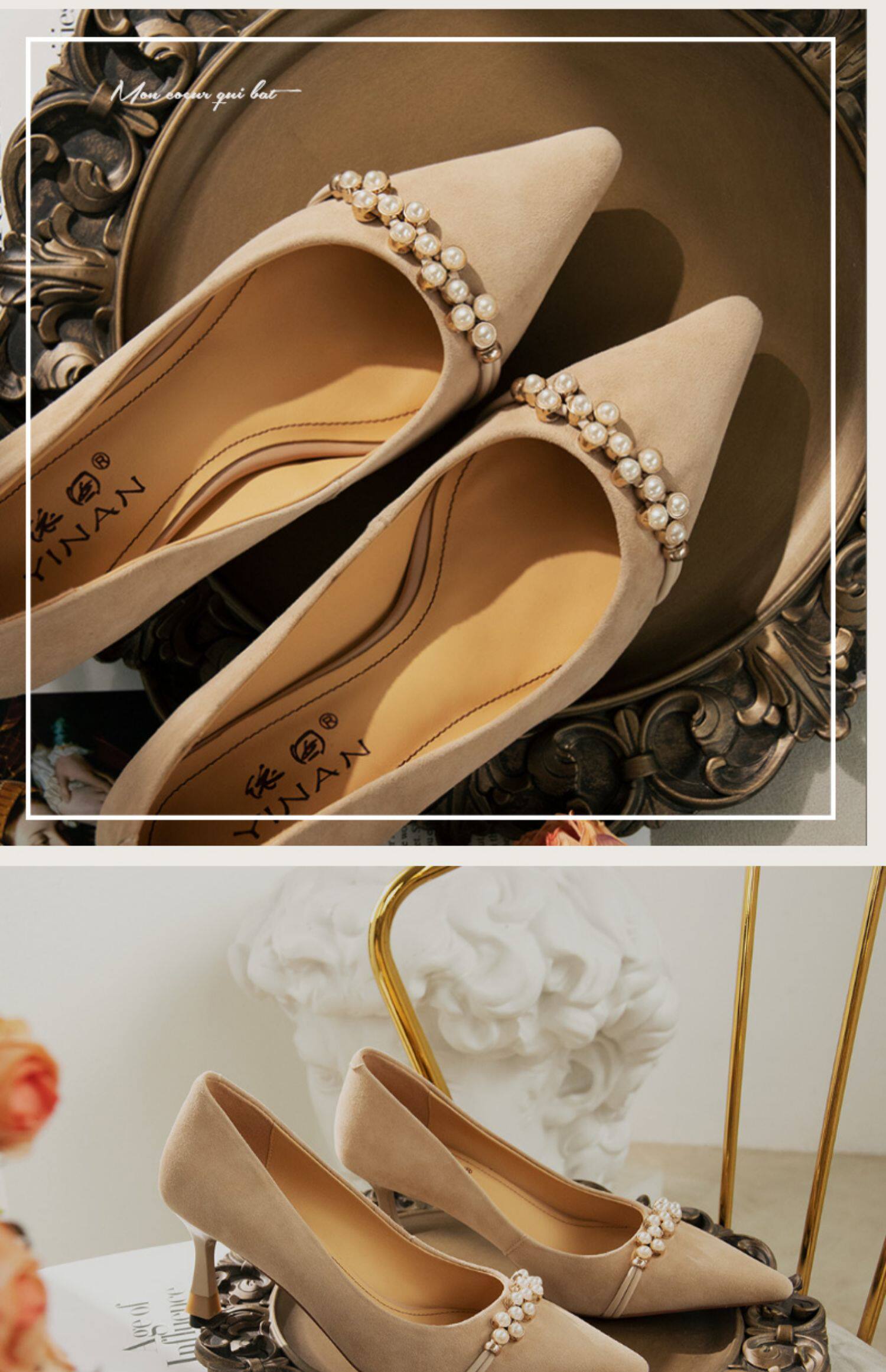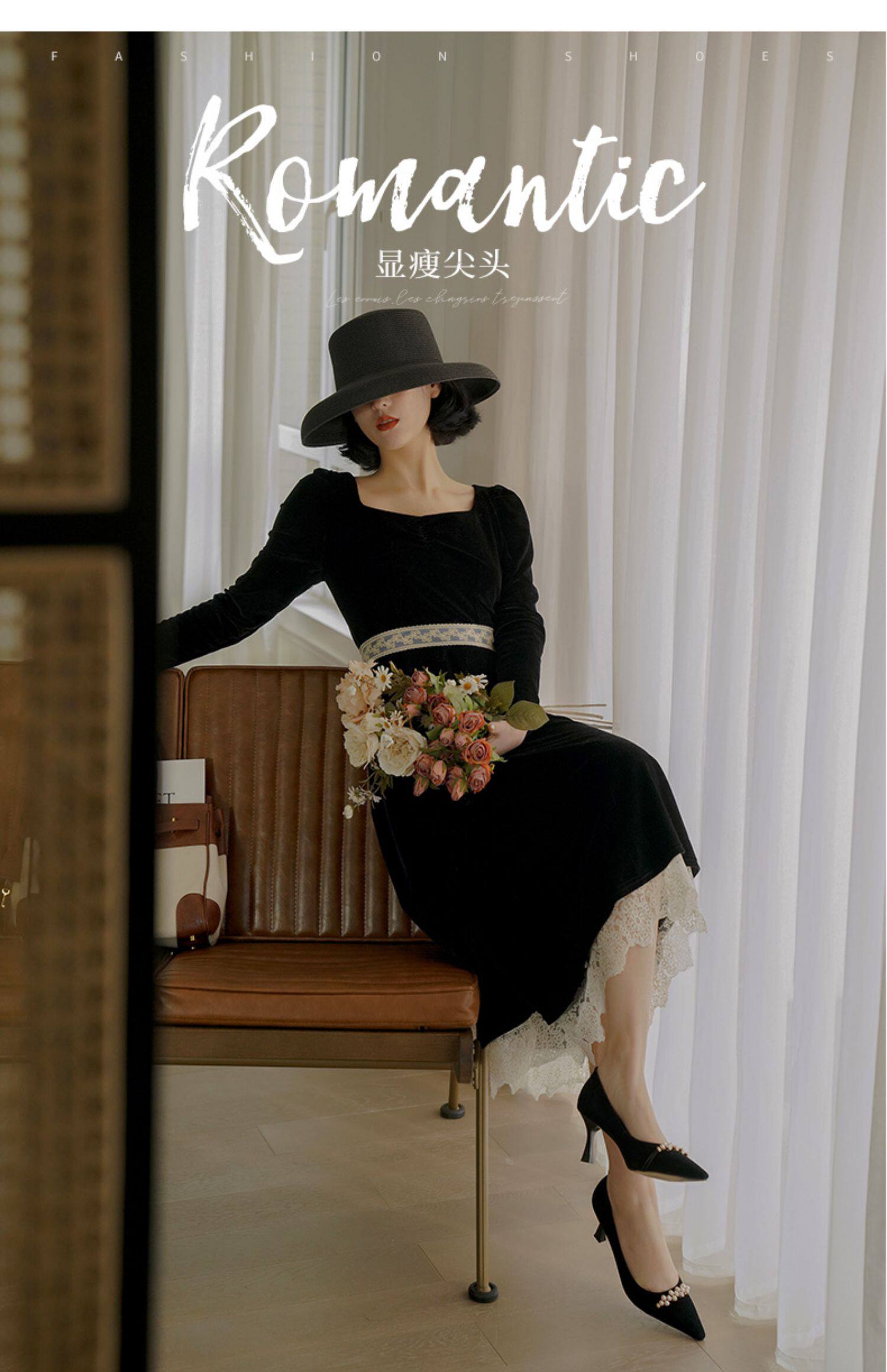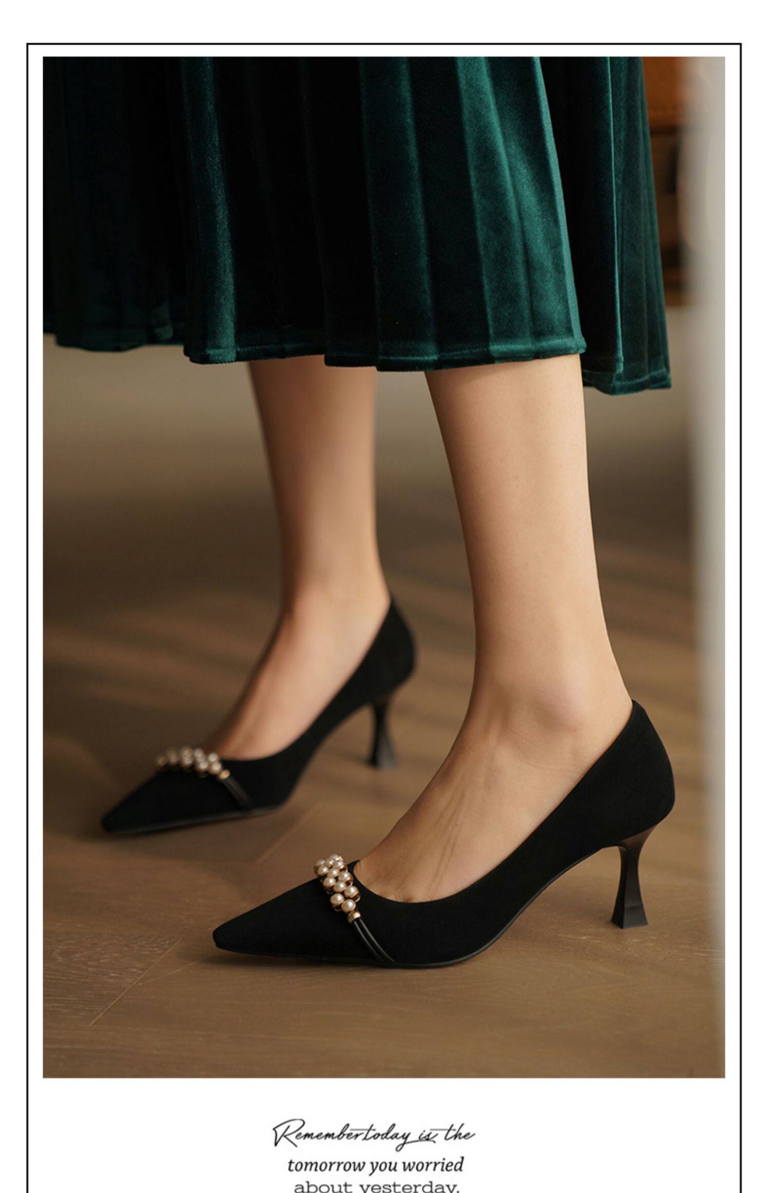 Рабочая черная весенняя обувь на высоком каблуке с заостренным носом, коллекция 2023, французский стиль