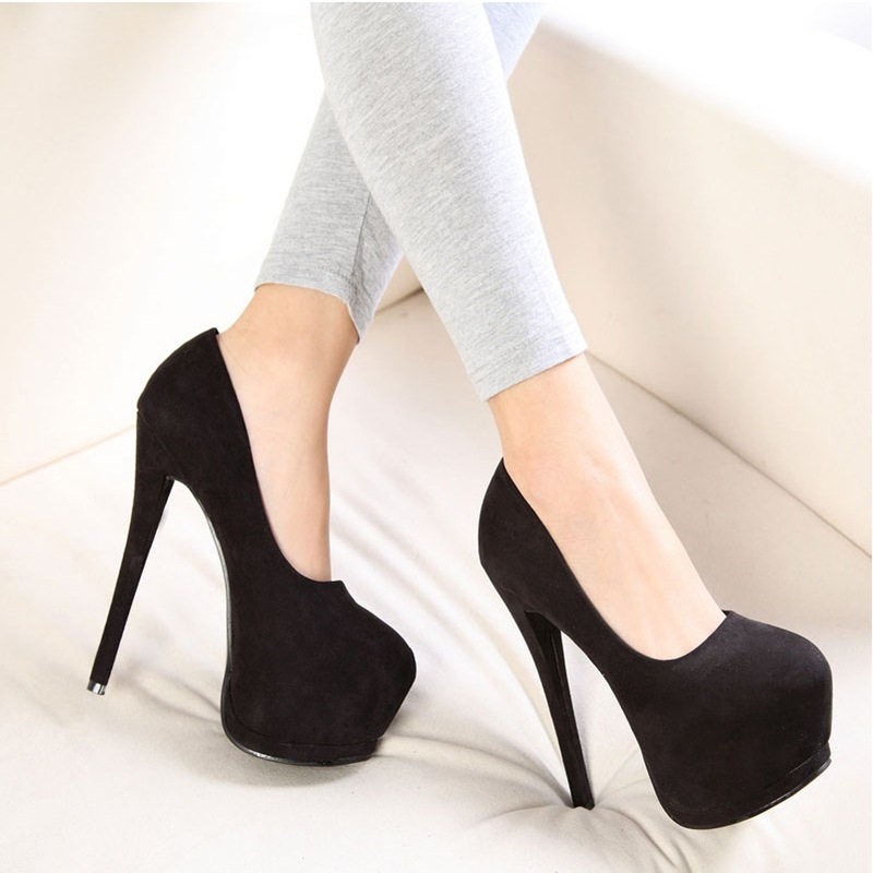 Сексуальная черная весенняя обувь на высоком каблуке, 15см