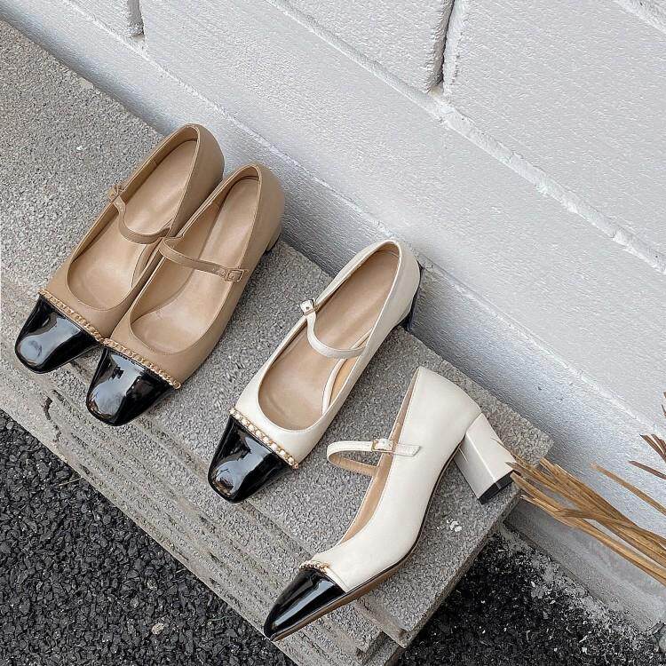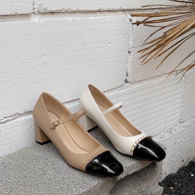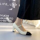 Женские туфли Мэри Джейн на толстом каблуке в стиле ретро, корейская версия, одиночные туфли на среднем каблуке с квадратным носком и неглубоким горлышком, маленькие весенние маленькие кожаные туфли в ароматном стиле 41
