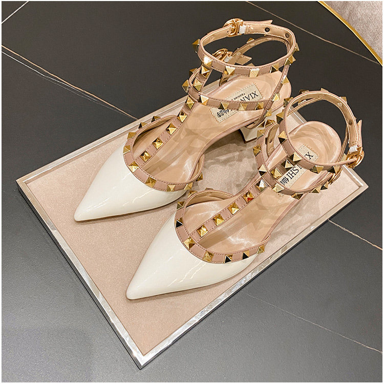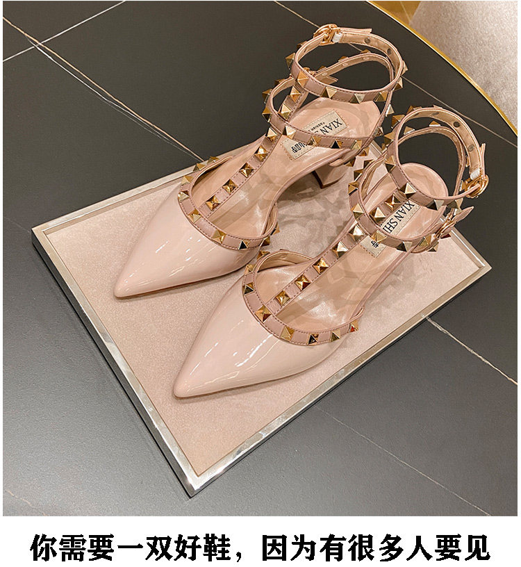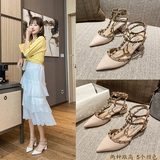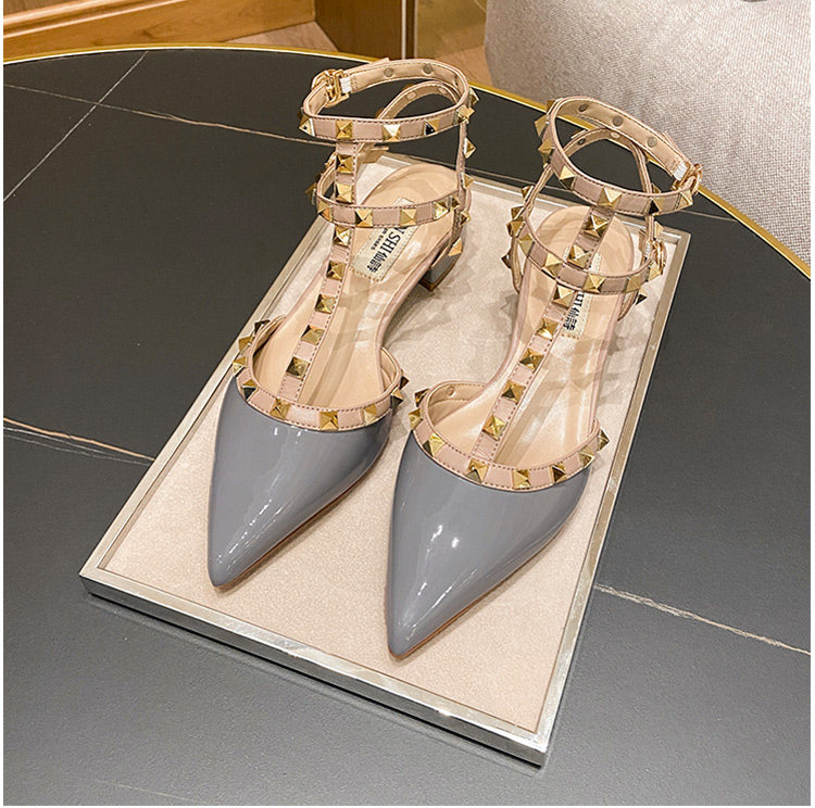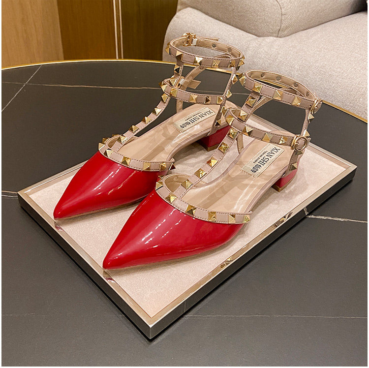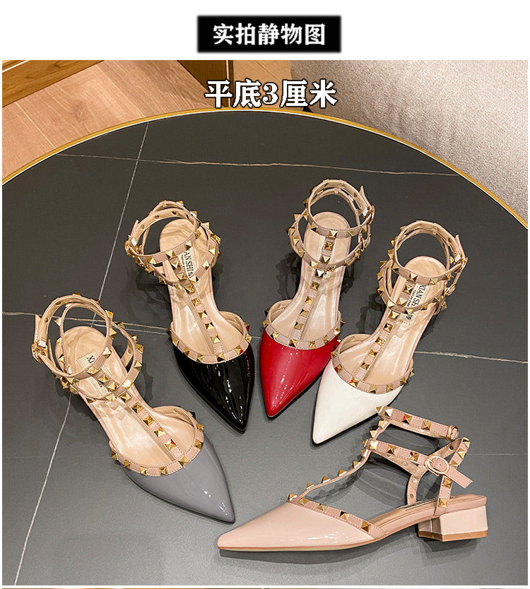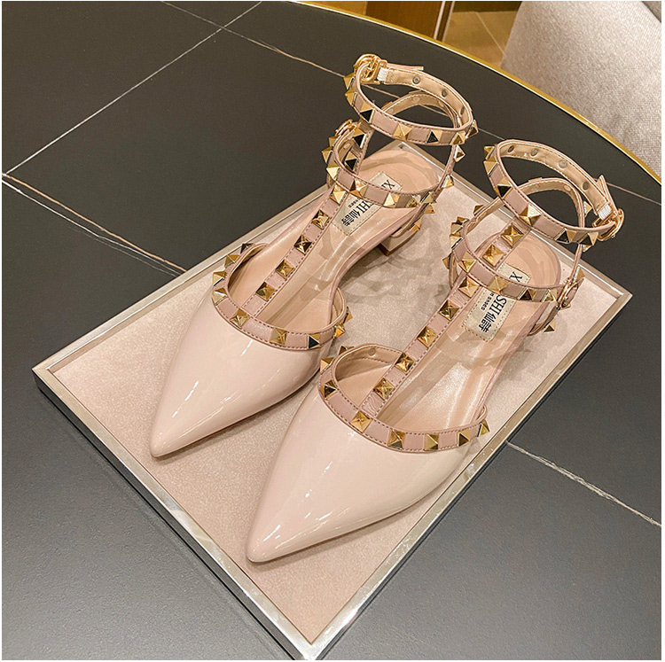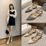 香港铆钉尖头平底低跟单鞋女2025春夏季新款百搭玛丽珍英伦风凉鞋