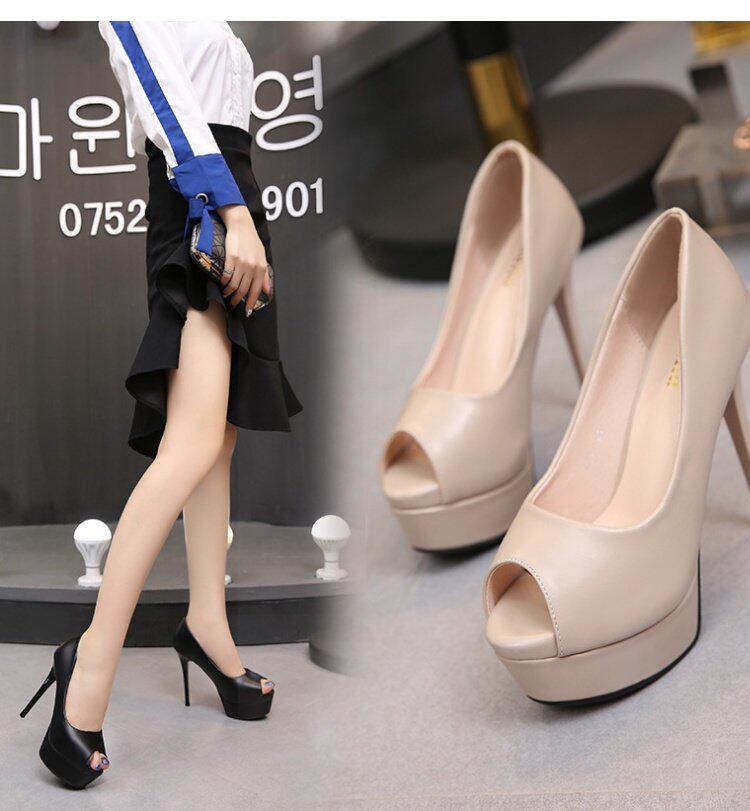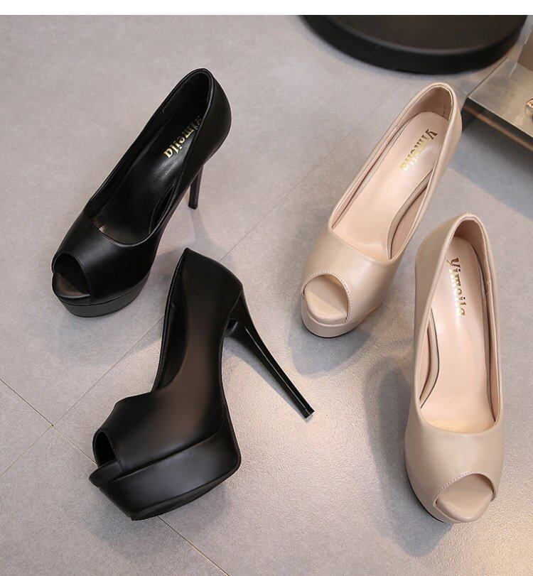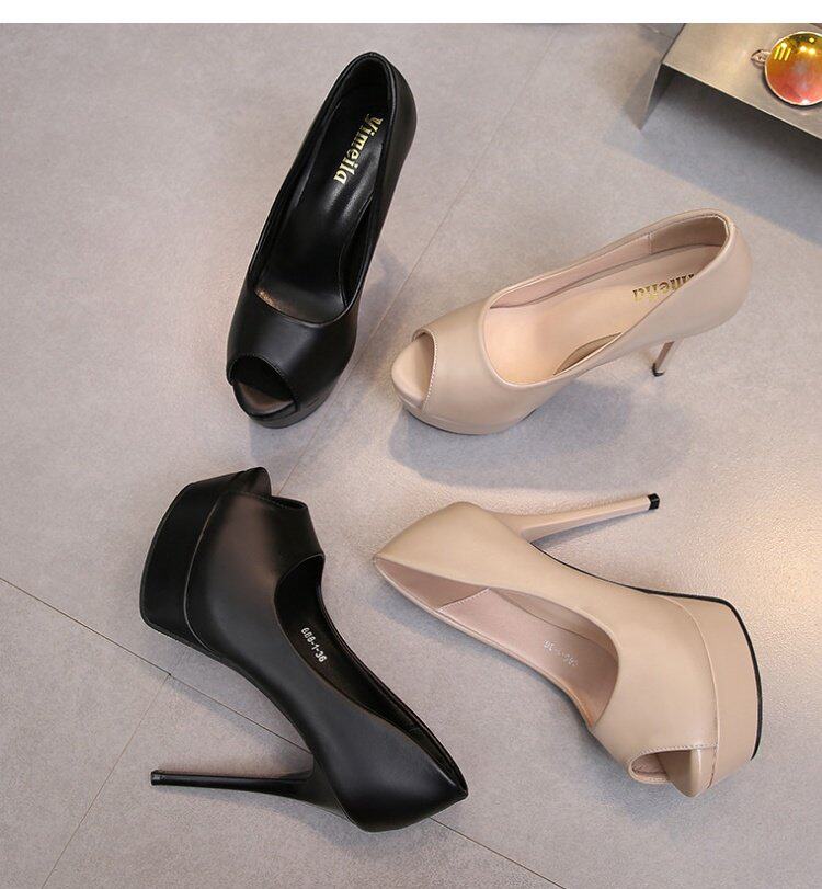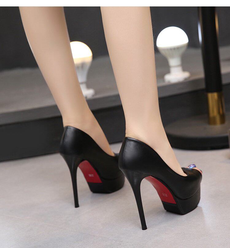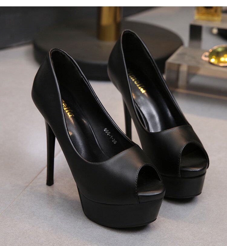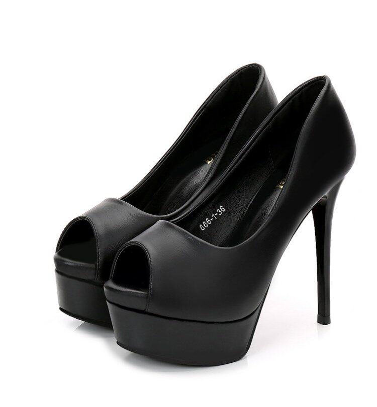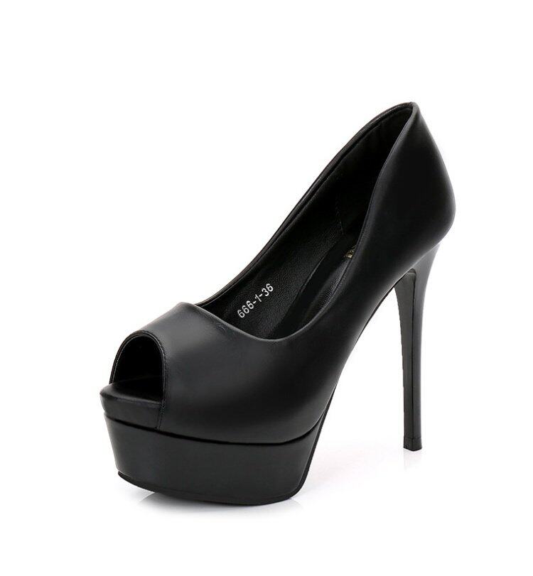 Сексуальная модная черная весенняя обувь на высоком каблуке, 14см