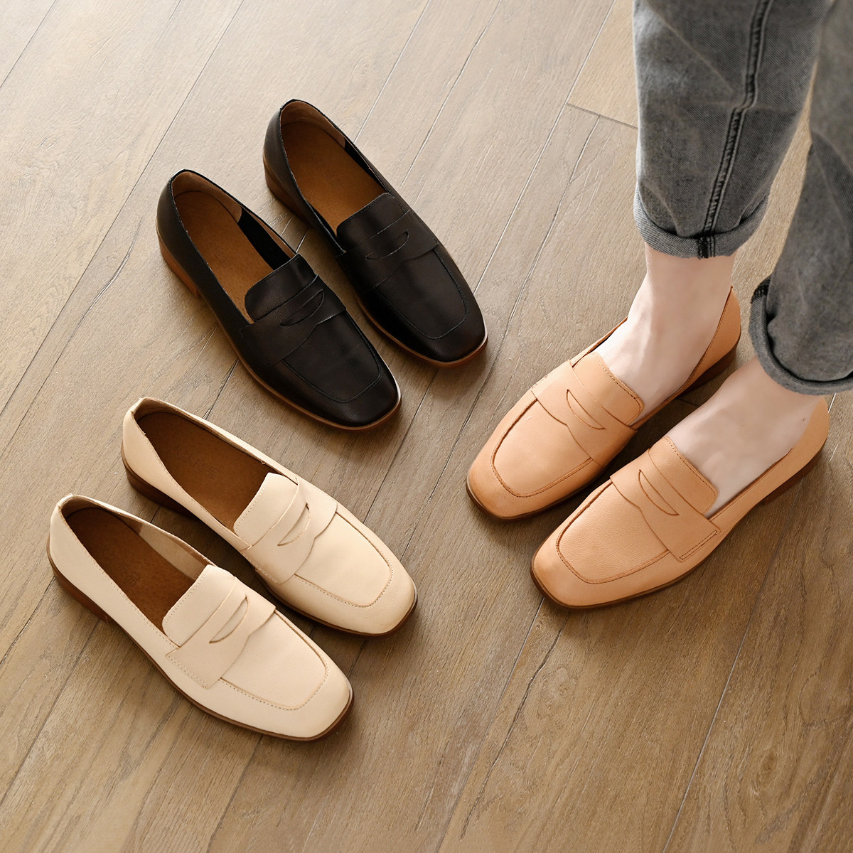 Shui Mu Liangpin индивидуальная марта -листья листья мягкая кожаная кожаная кожаная кожаная низкая низкодовольная женская одиночная корпорация.