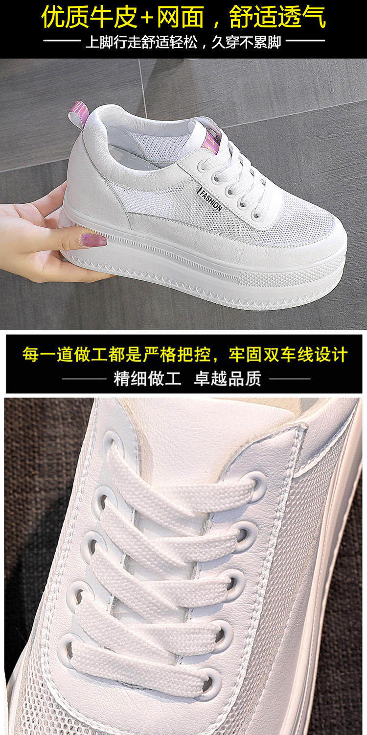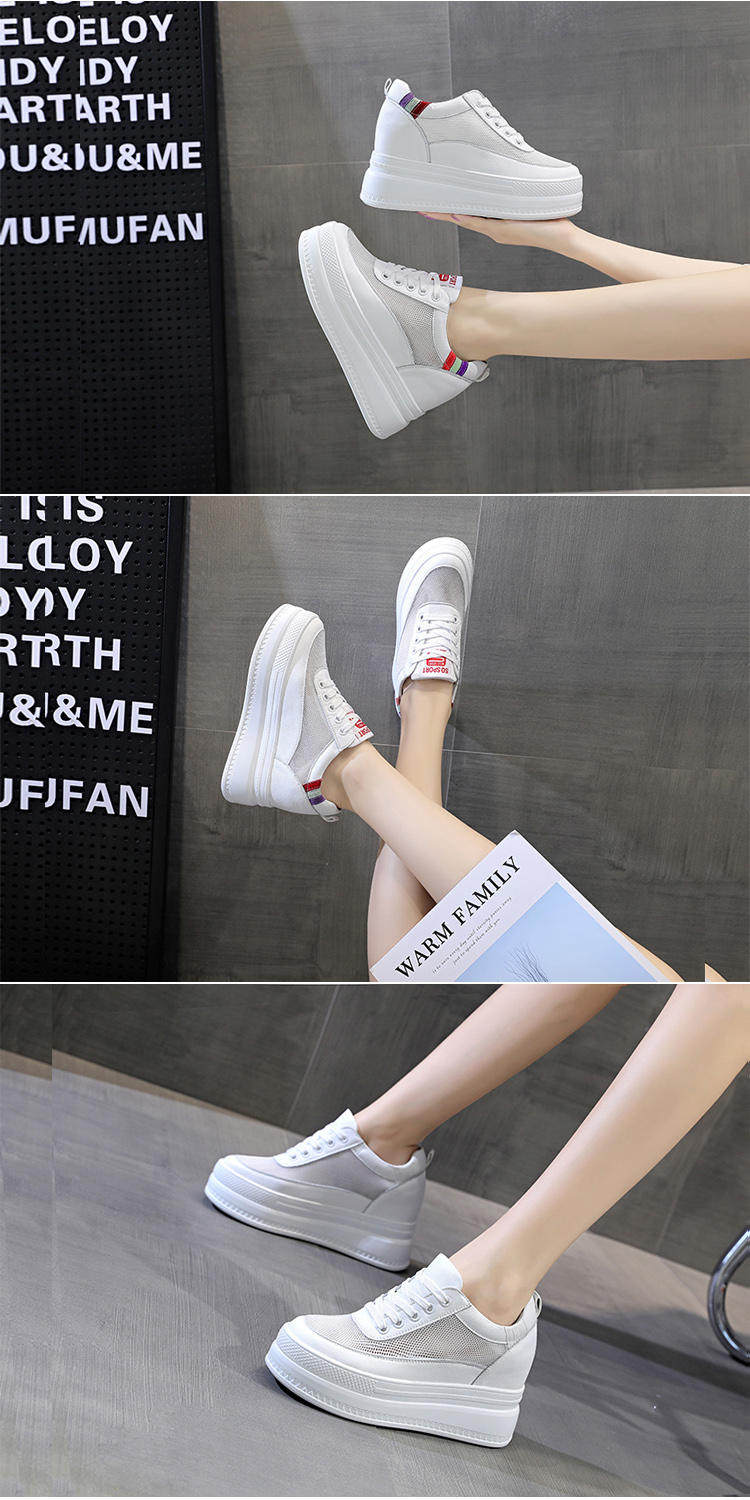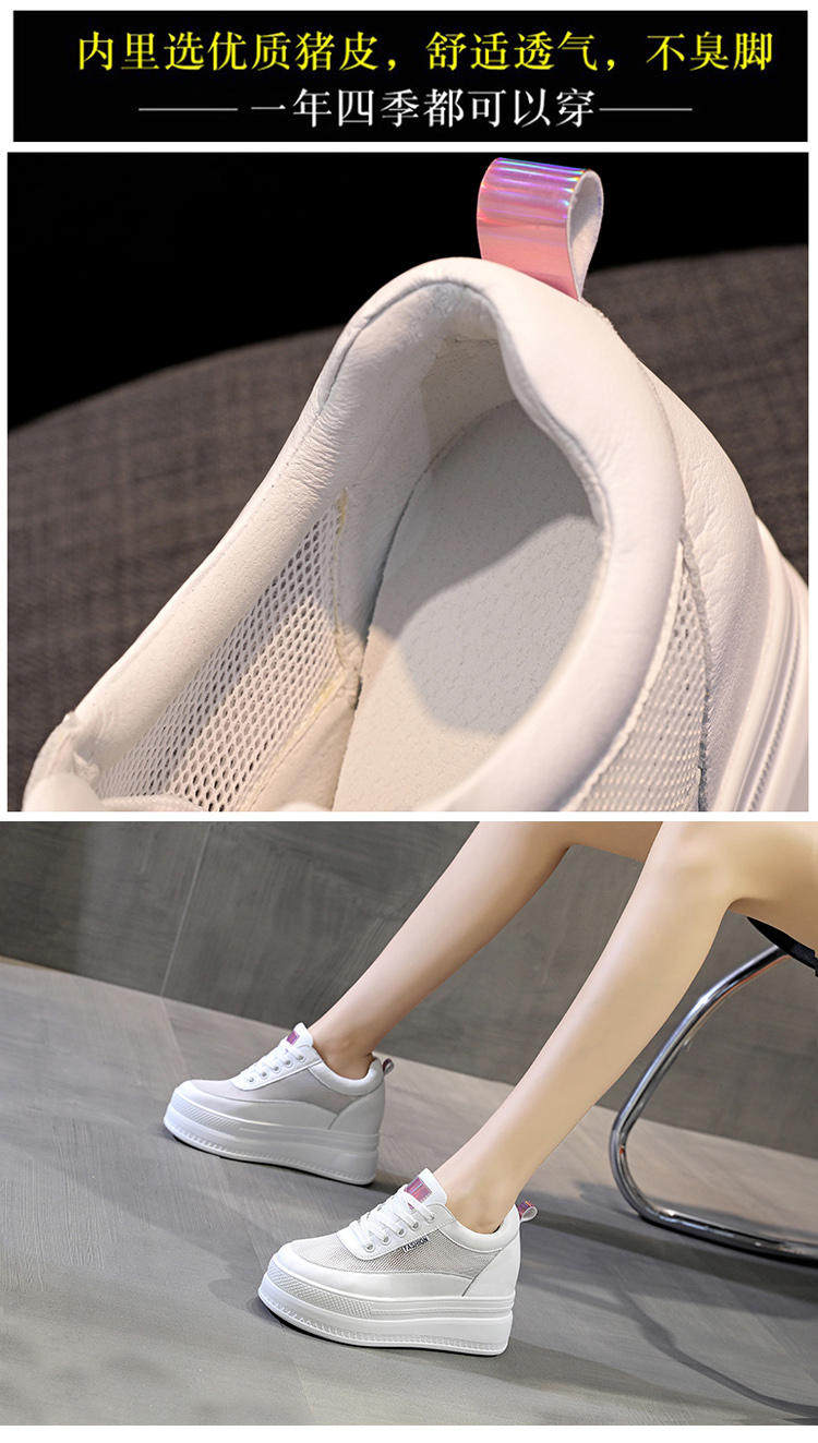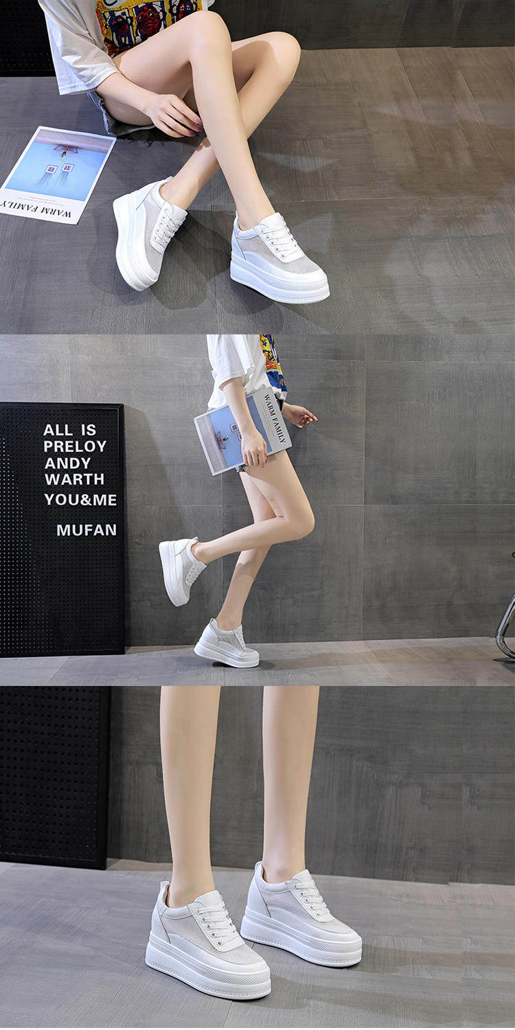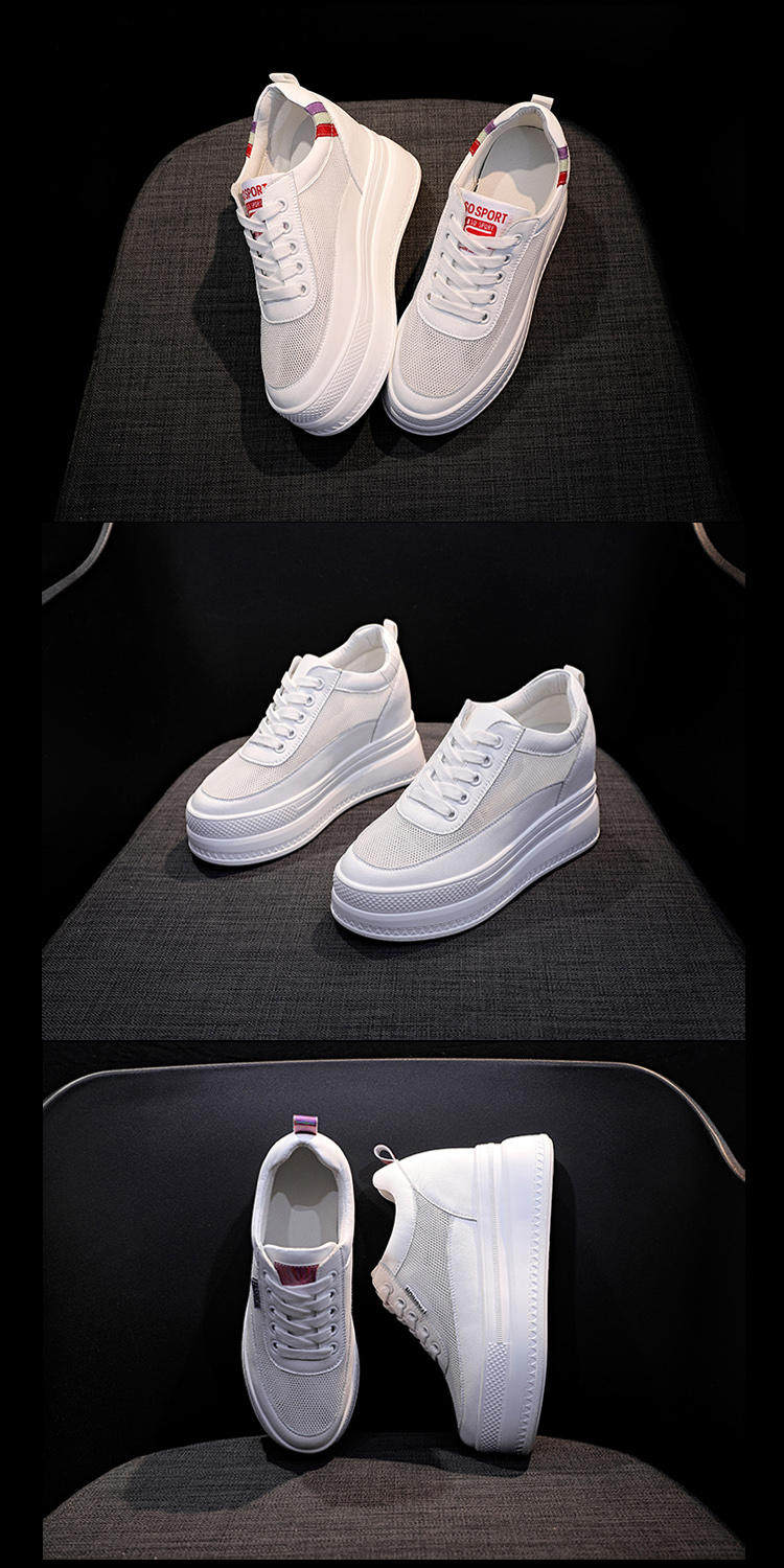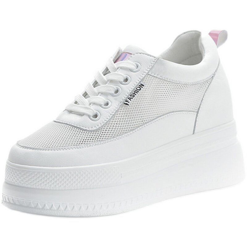 Летняя дышащая высокая белая обувь на платформе, Гонконг, из натуральной кожи, 10см