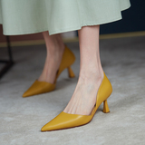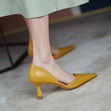 Шик легко носить!Владелец толкнул!Французский минималистский кожаный полый, мелкие каблуки, одиночные женские высокие каблуки