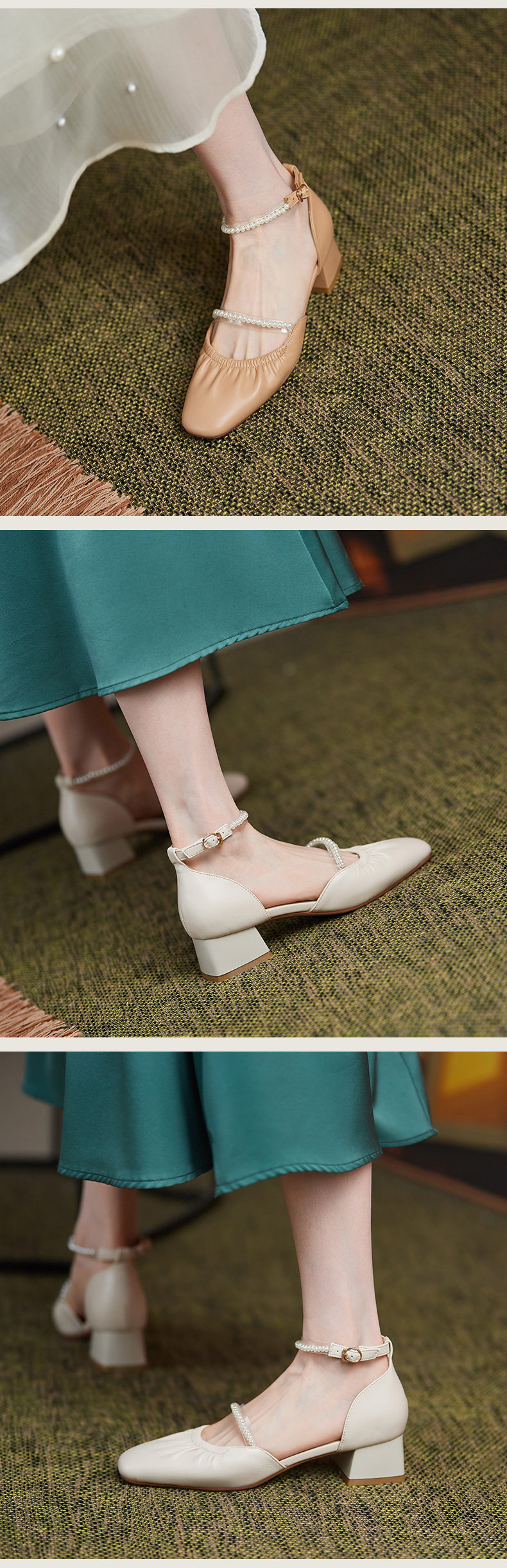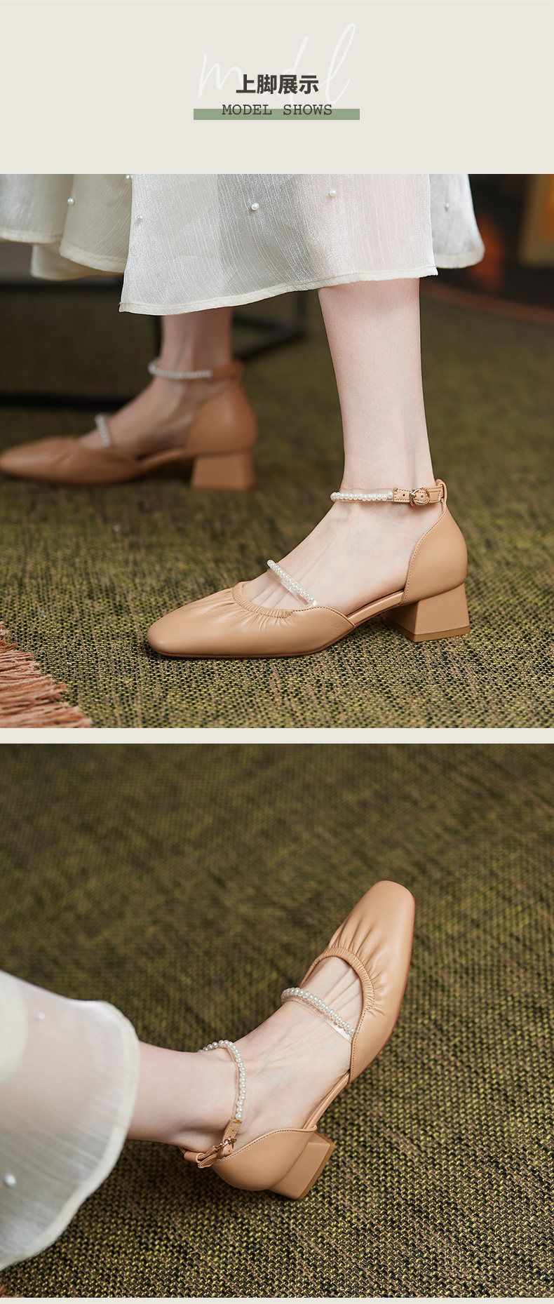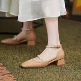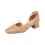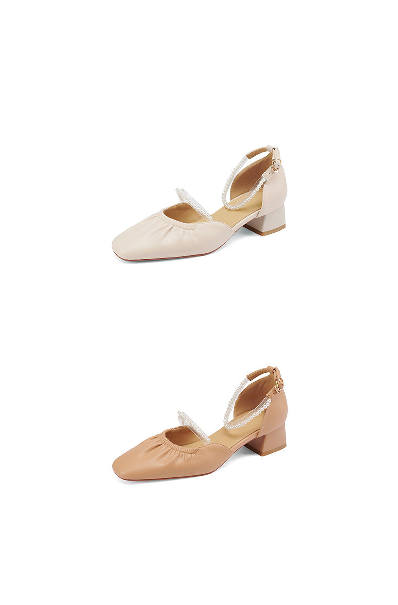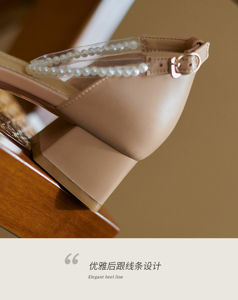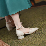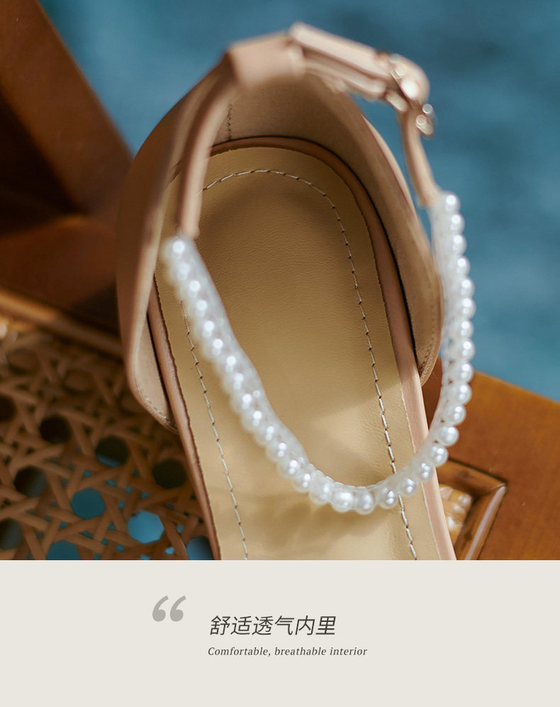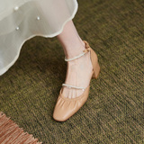 Мори Сандалии Женская летняя пятка мягкая кожаная кожаная жемчужная белая фея ночь поздно вечерняя ветра одиночная туфли густой каблук