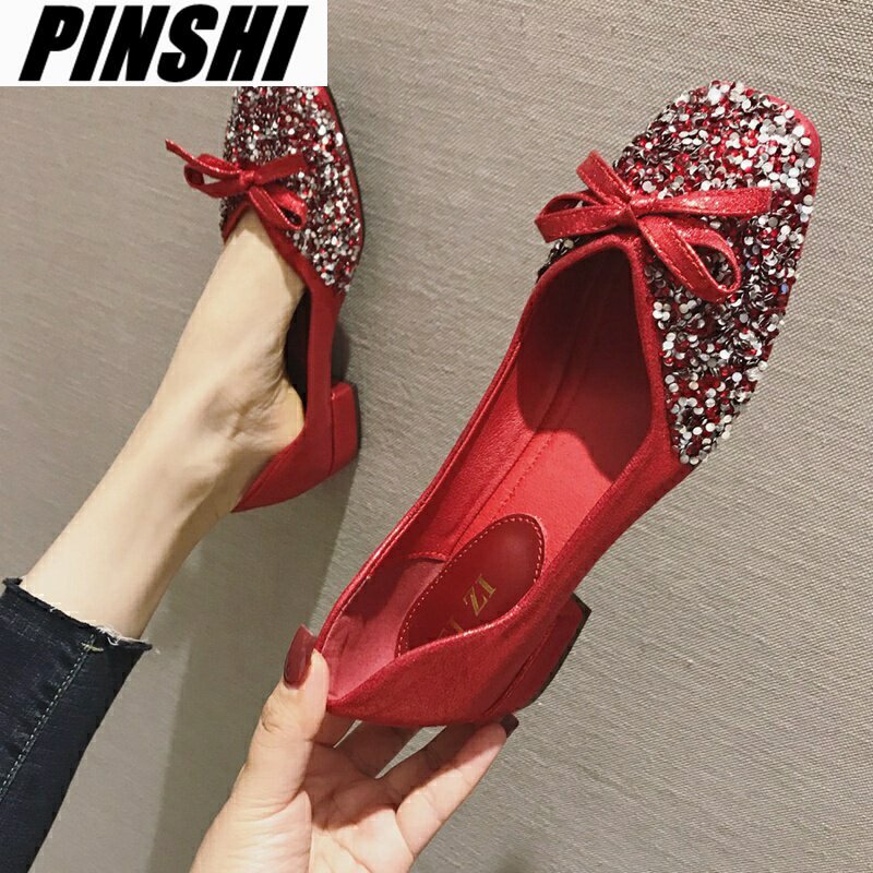 Обувь, летние свадебные туфли, красные блестки для ногтей, сезон 2021, большой размер