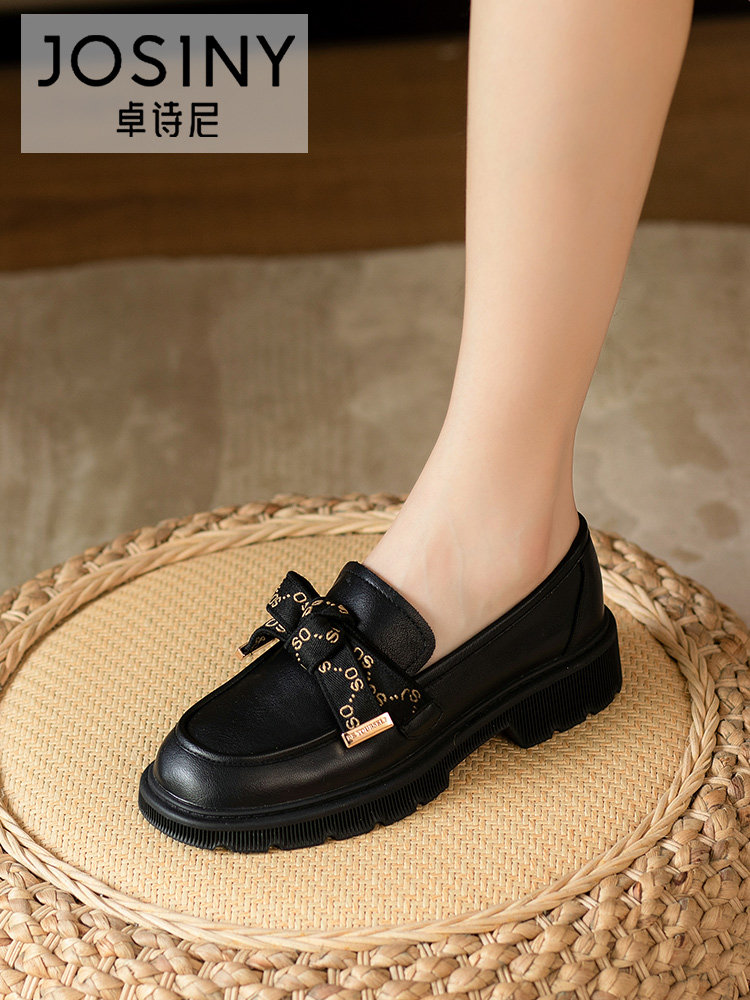 Обувь для кожаной обуви в английском стиле на платформе, демисезонные флисовые японские черные лоферы, в британском стиле