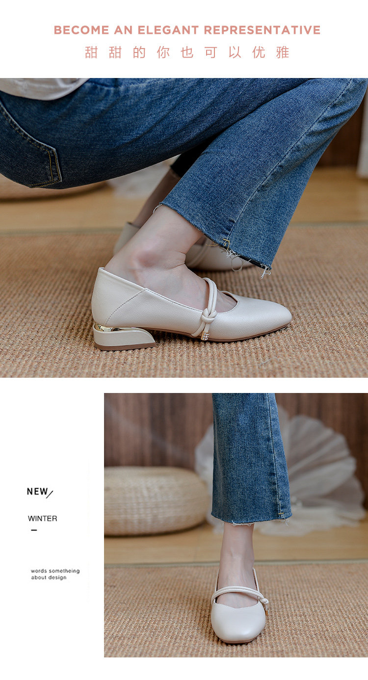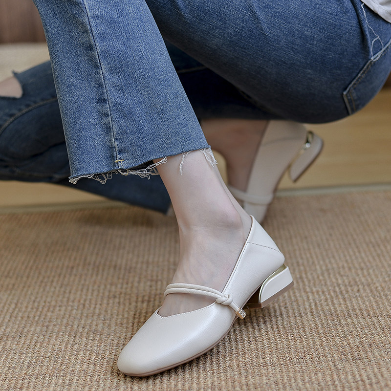 Нежные женские туфли-шапки на толстом каблуке, весна-осень 2025, новый стиль, маленький размер 3233, вечерний бриз, универсальные женские четырехсезонные одиночные туфли