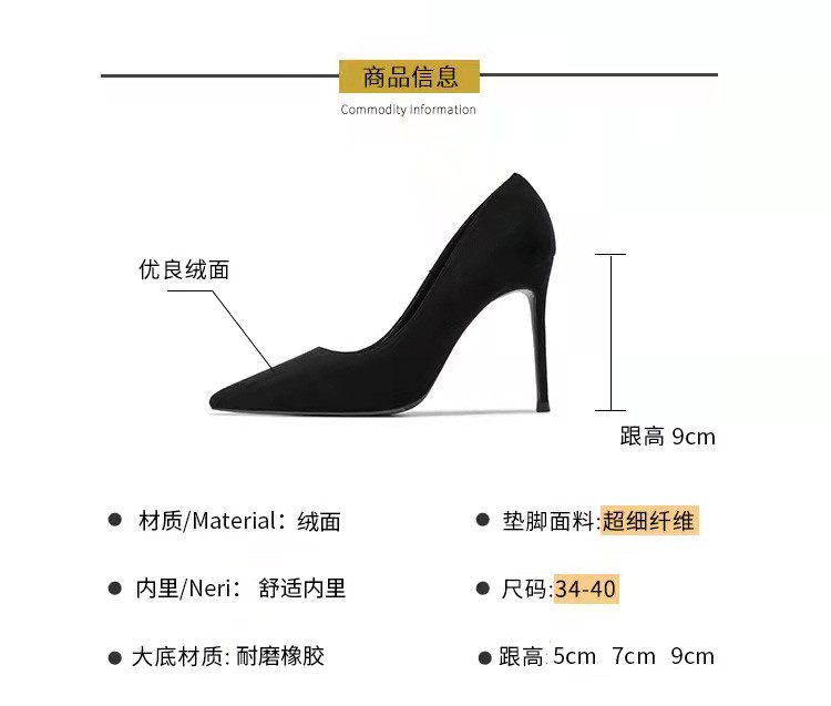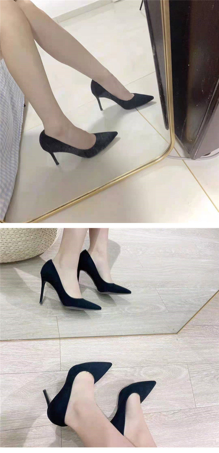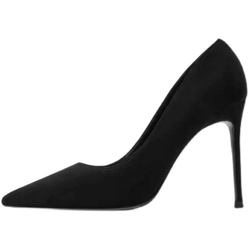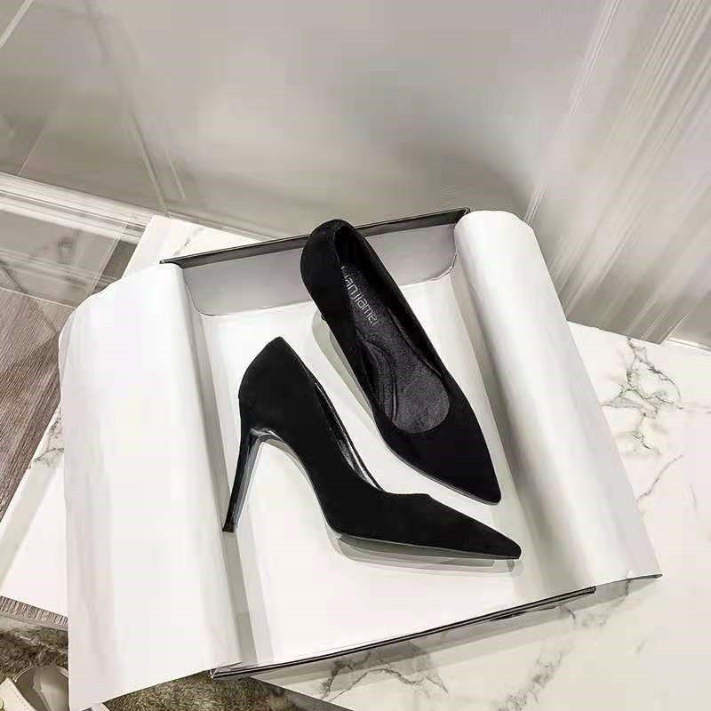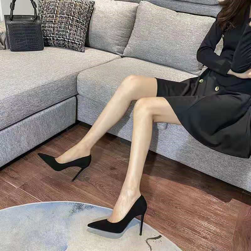 Черная обувь на высоком каблуке с заостренным носом, французский стиль, 5см, против усталых ног