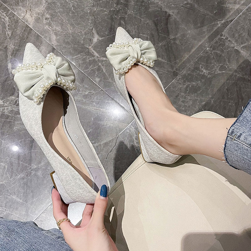 Обувь с заостренным носом, летние универсальные туфли с бантиком, коллекция 2021