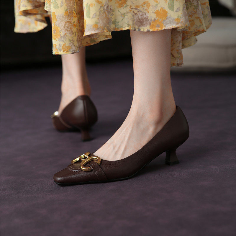 Ретро осенние элегантные туфли на высоком каблуке с низким вырезом, французский стиль, коллекция 2021, тренд сезона, городской стиль