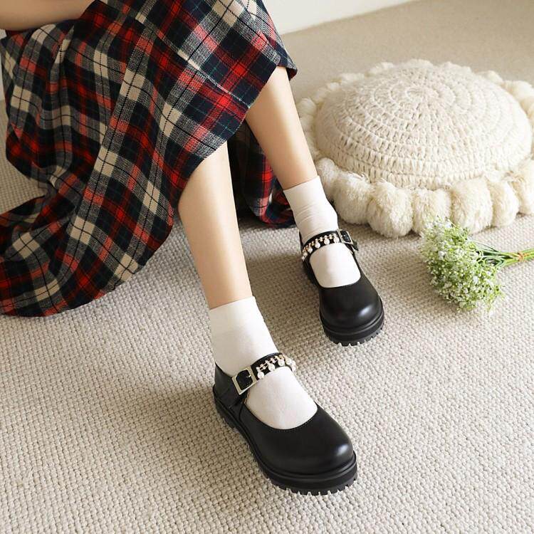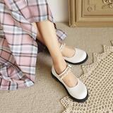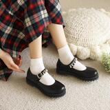 Осенние новые туфли на платформе, туфли на низком каблуке, с круглым носком, на плоской подошве, детская студенческая обувь в стиле Лолиты, черные кожаные туфли с неглубоким горлышком