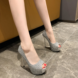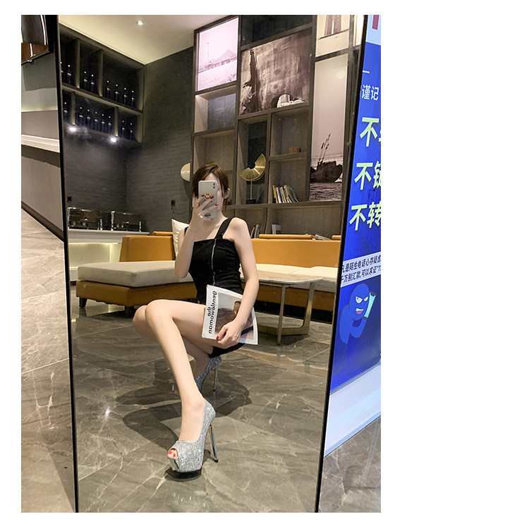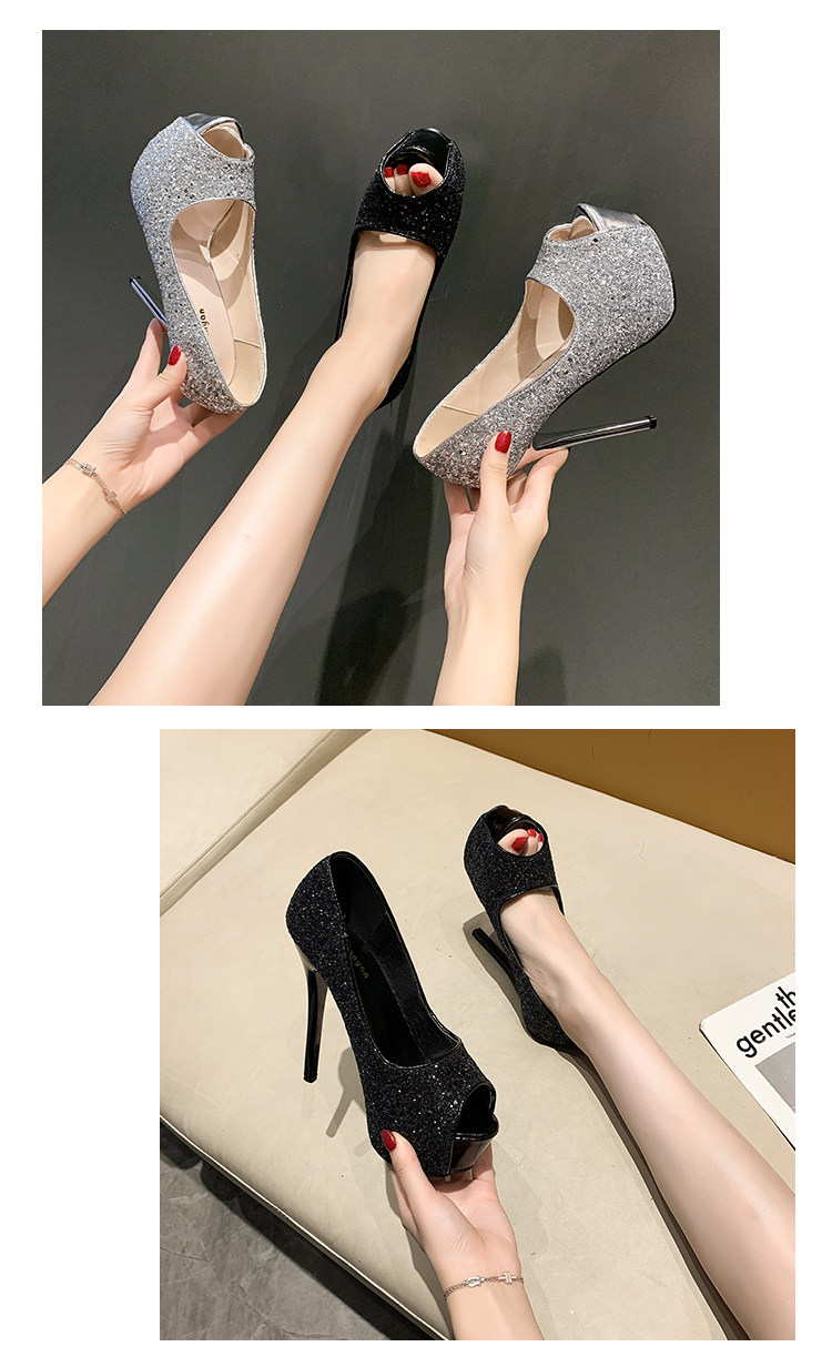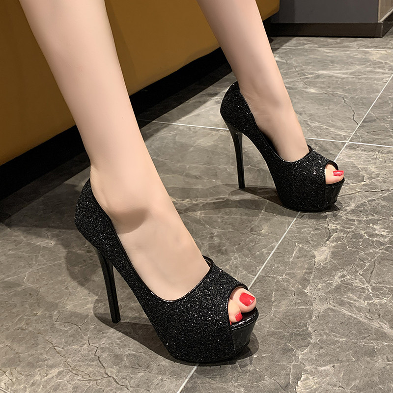 Сексуальная обувь на высоком каблуке с блестками для ночного клуба, водонепроницаемая обувь на тонком каблуке 14 см на платформе, новинка 2021 года, летние туфли принцессы