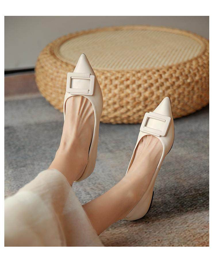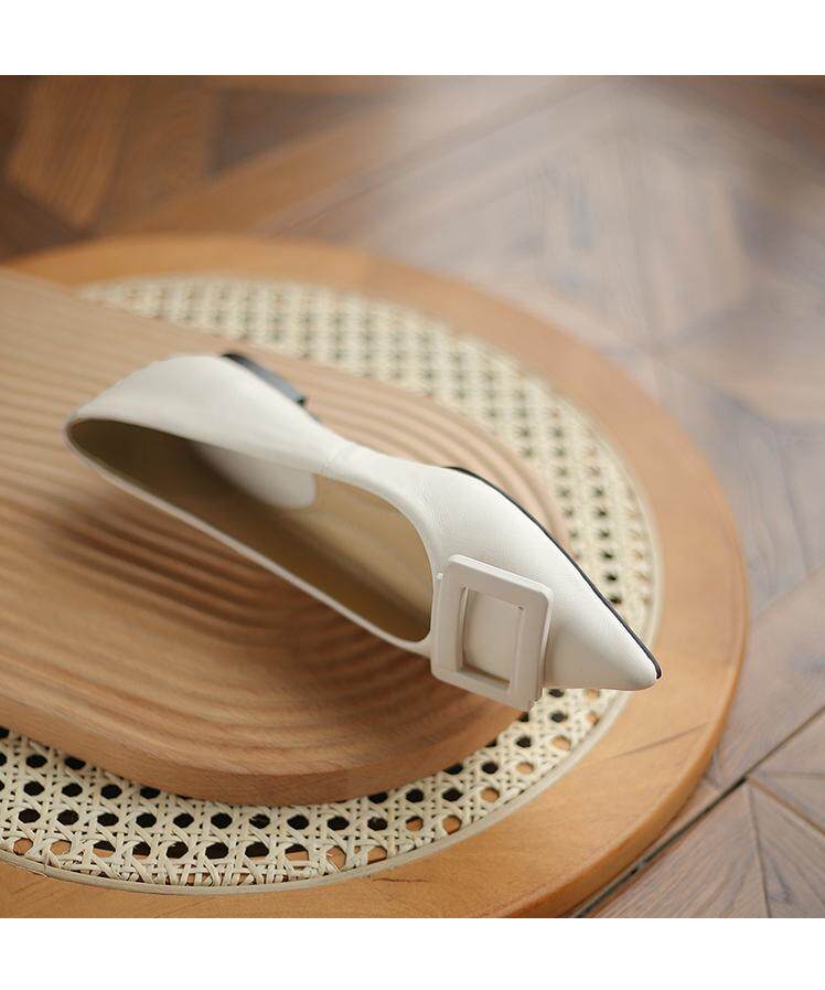 Демисезонная обувь с заостренным носом, белые туфли на высоком каблуке, Гонконг, тренд сезона, из натуральной кожи