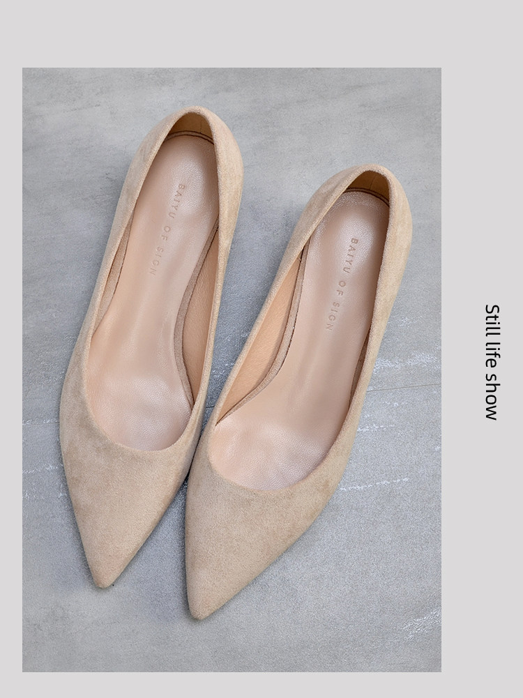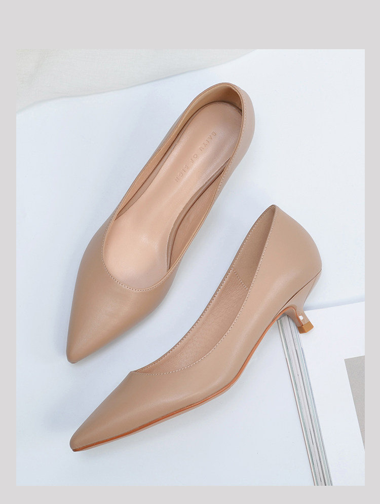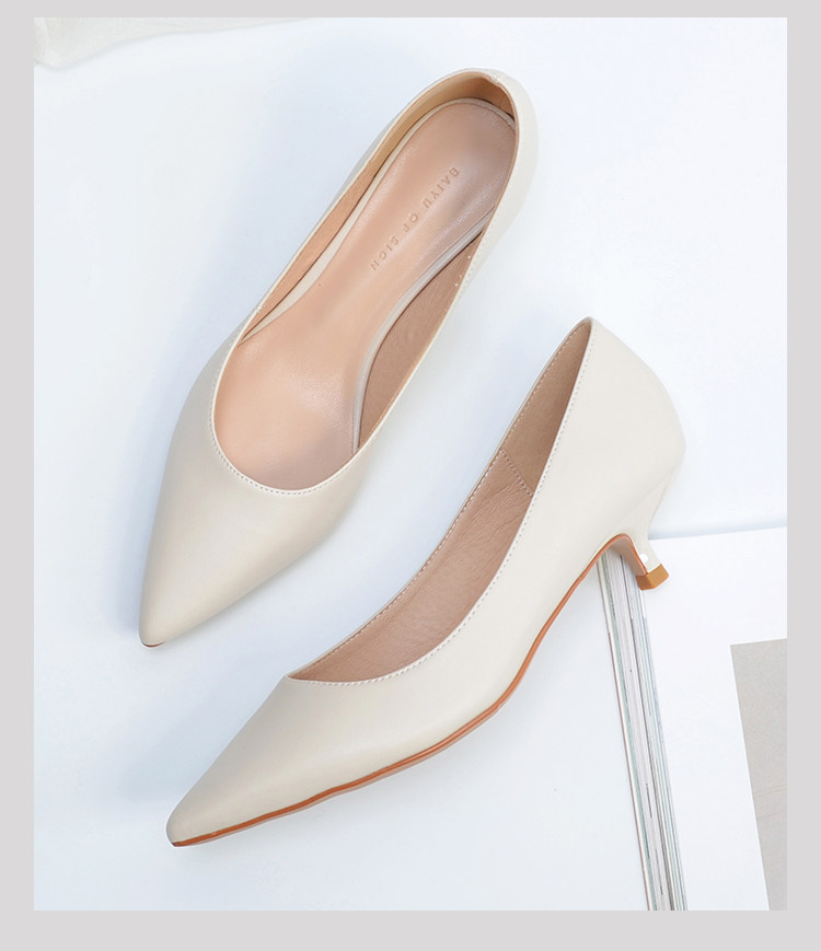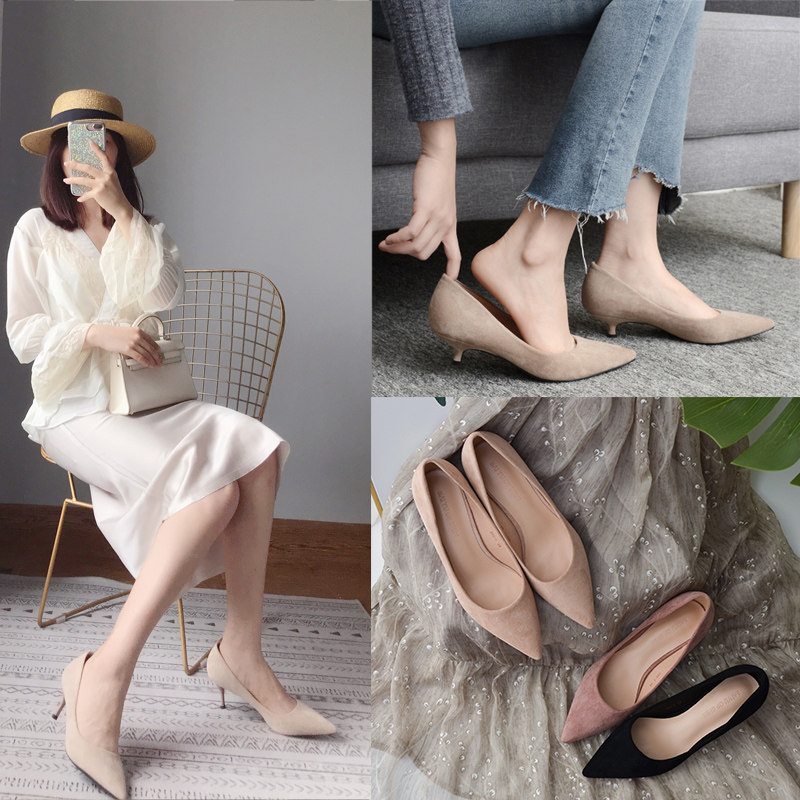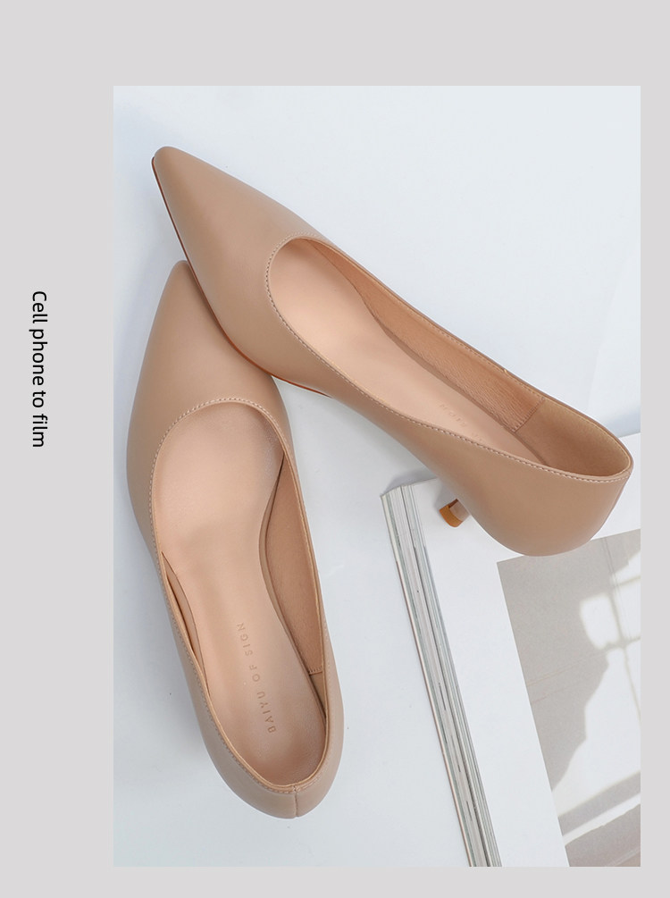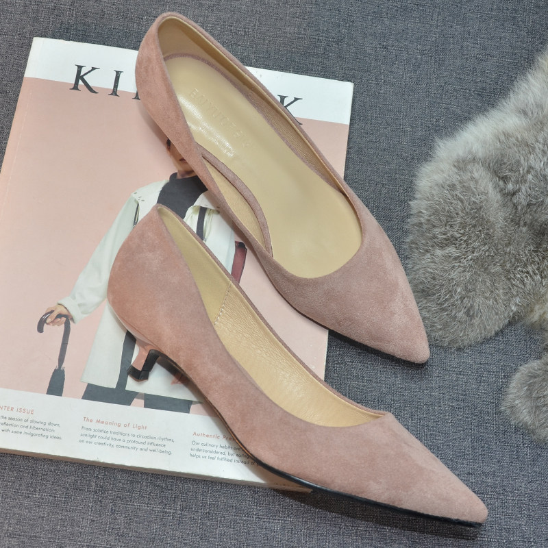 Туфли на высоком каблуке, нюдовая рабочая обувь с заостренным носом, для подружки невесты, Гонконг, 2023, 3см