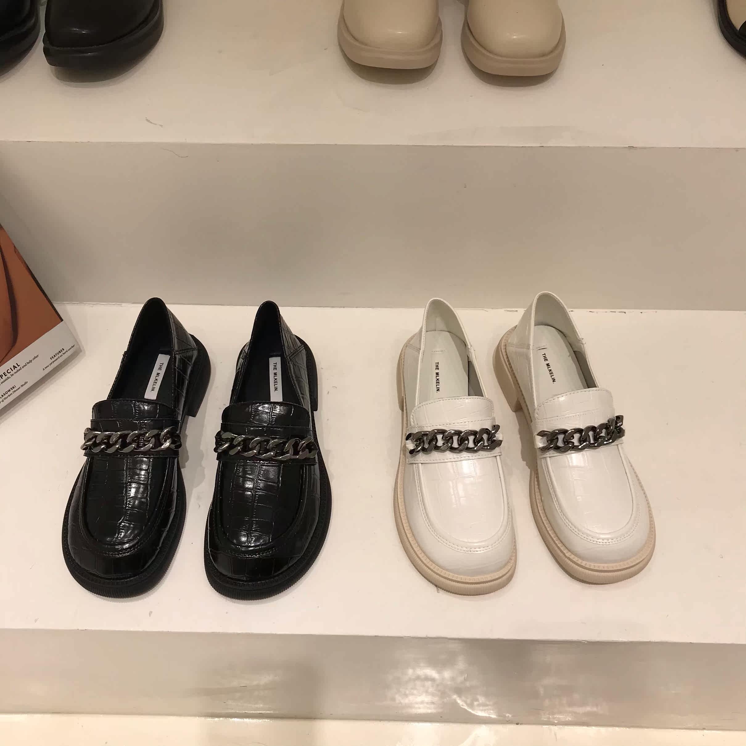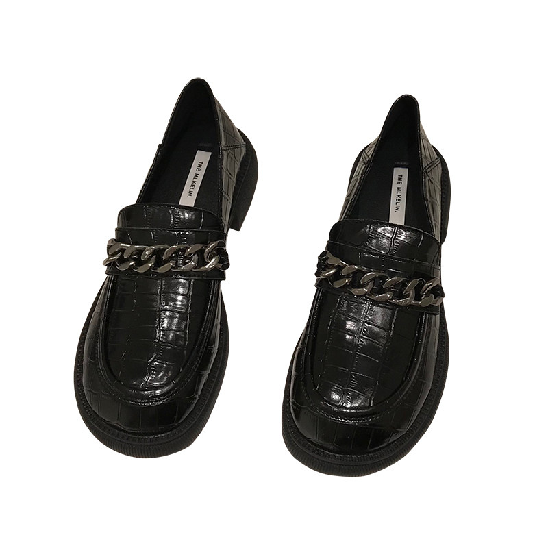 Маленькие кожаные туфли в британском стиле на толстой подошве для женщин, новинка 2024 года, весенние черные лоферы в стиле ретро с большим носком, весенние, осенние и зимние
