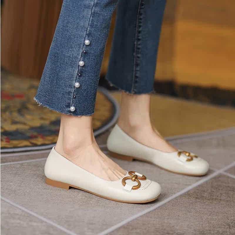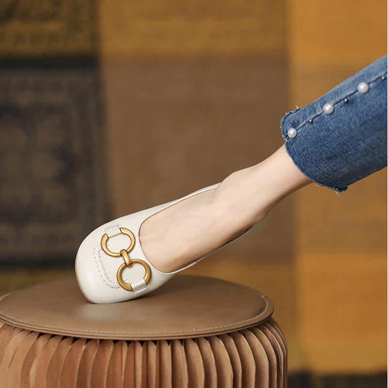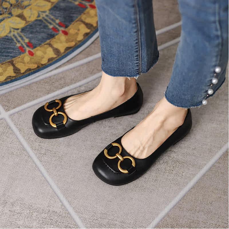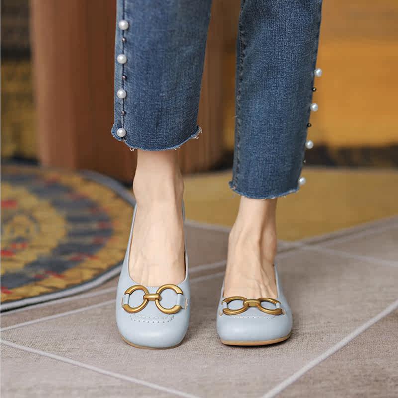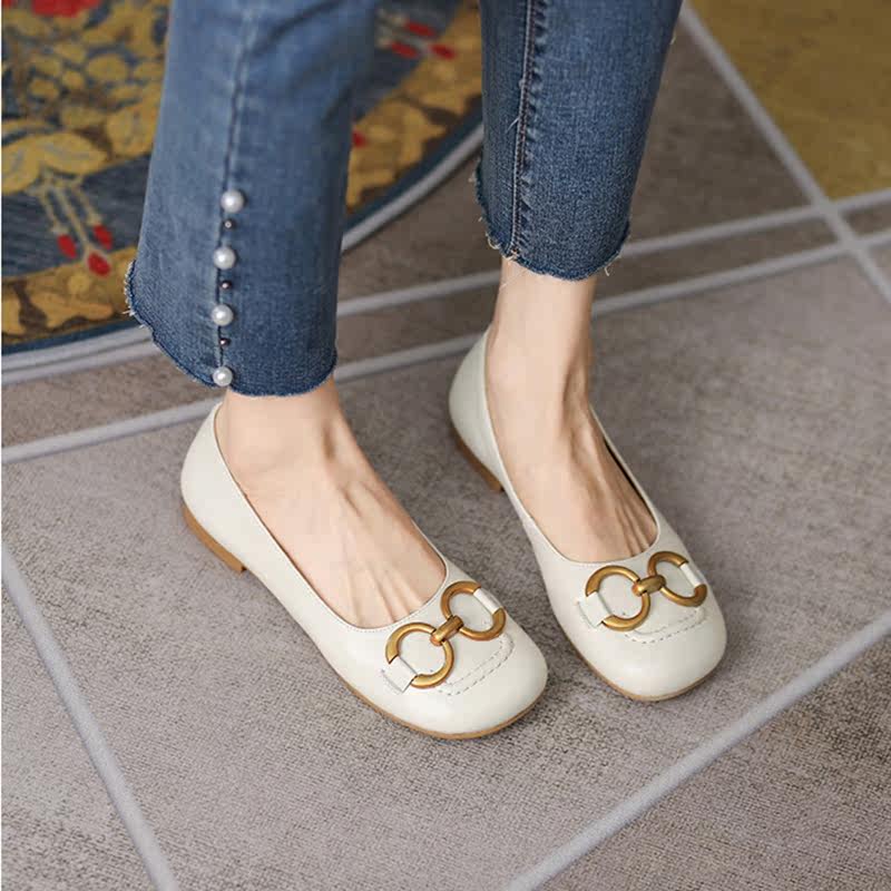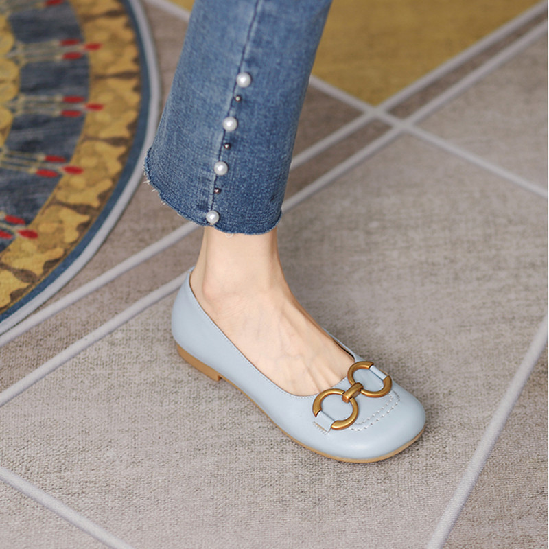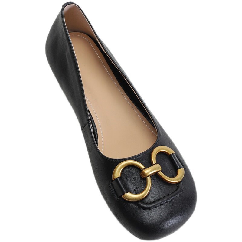 Оригинальный шикарный шикарный гигант ~ кожаная круглая металлическая пряжка одиночная обувь самка 21 новые универсальные бабушки