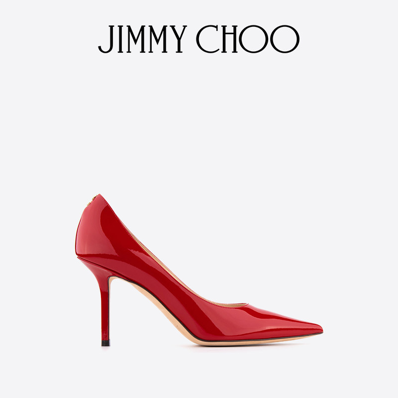 [Новый продукт] Джимми Чу/Любовь 85 JC Значок декоративный красный патентная кожаная кожа высокая ботинка с одиночной обуви