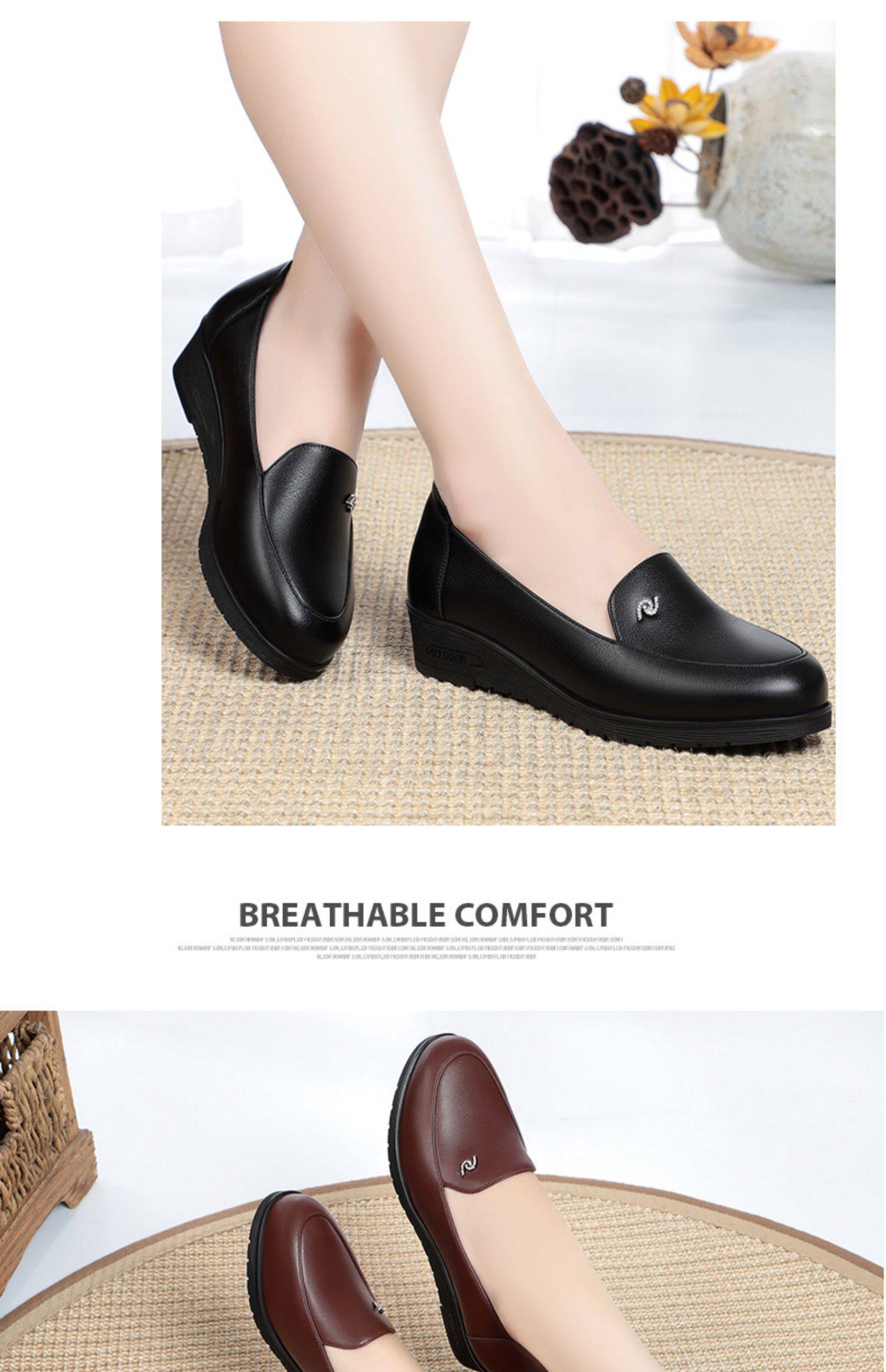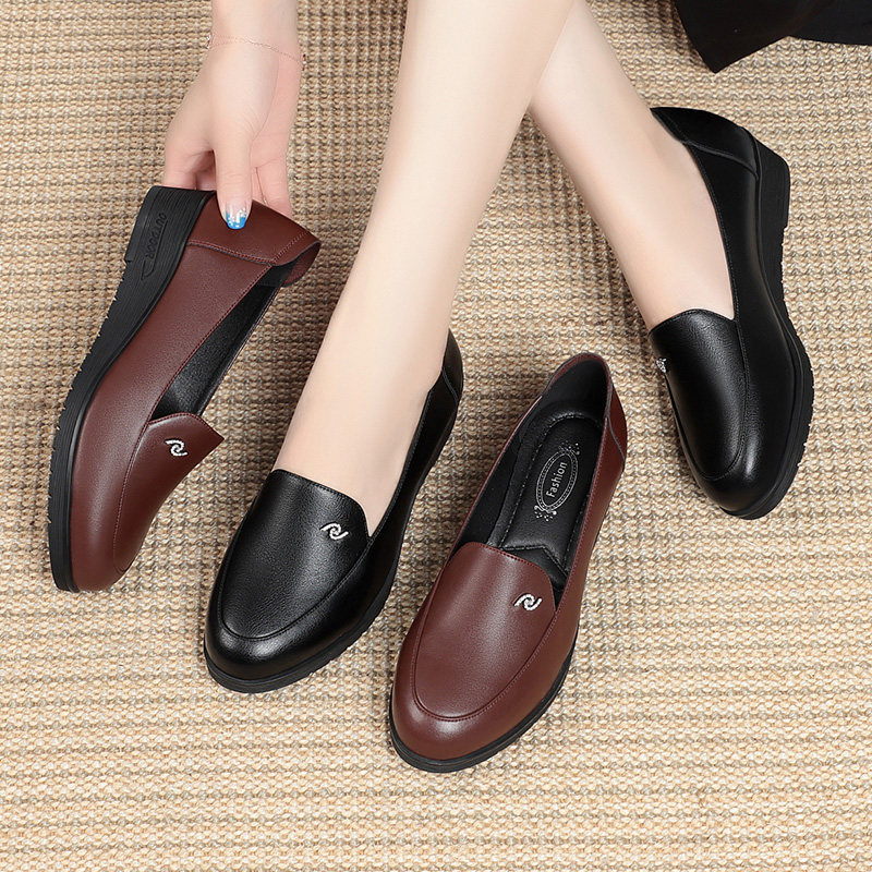 Мама ботинки одиночная обувь кожа мягкие дно с наклонами с средней и пожилой женски