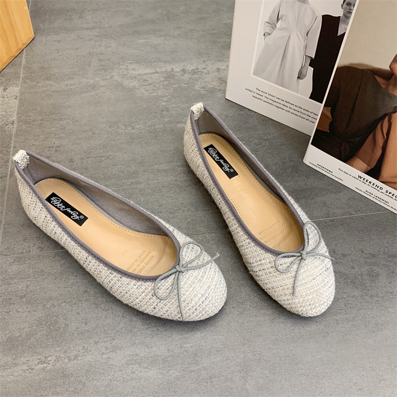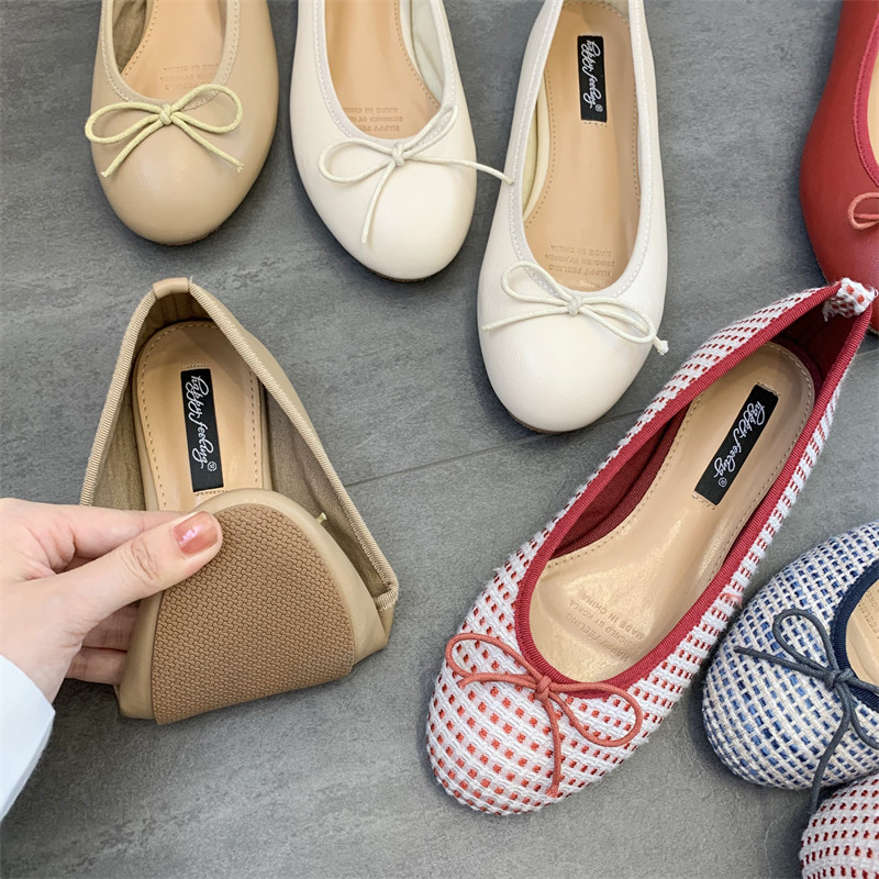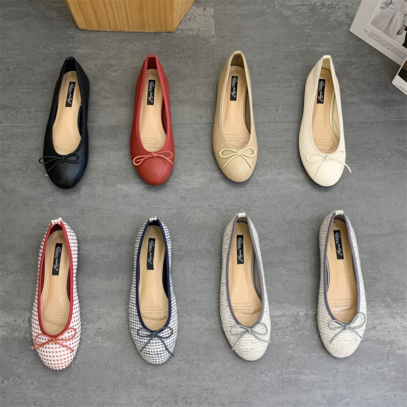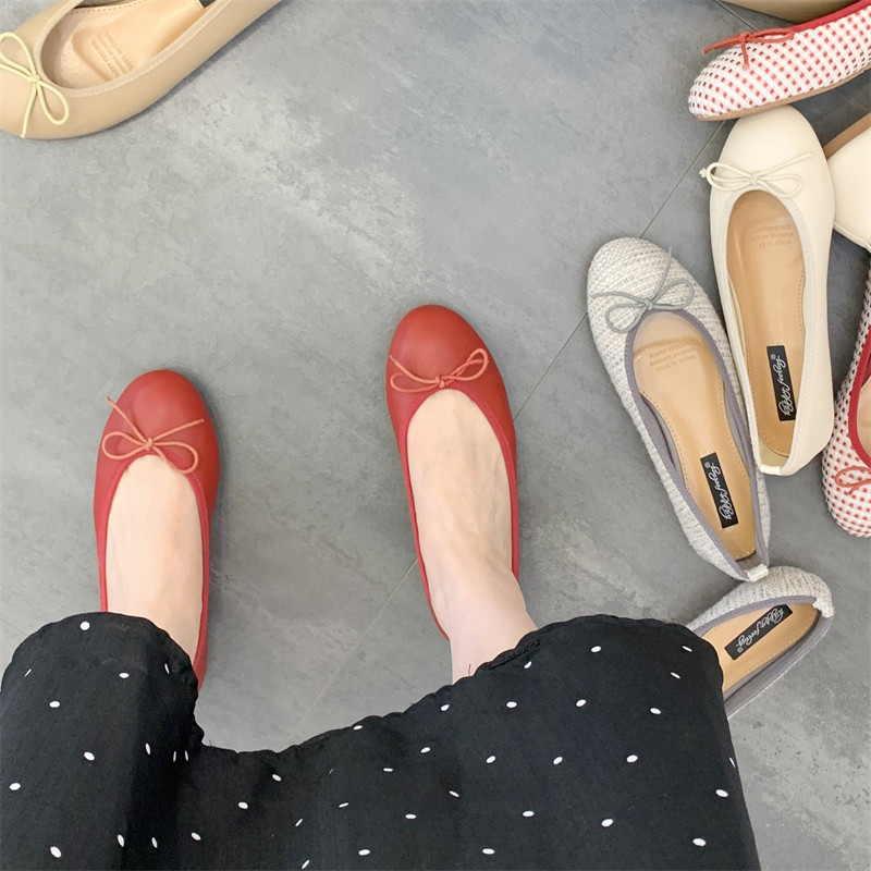 Балетные туфли на плоской подошве, женская обувь, весна-осень 2025, новый стиль, универсальные туфли-шапочки с неглубоким круглым носком и галстуком-бабочкой