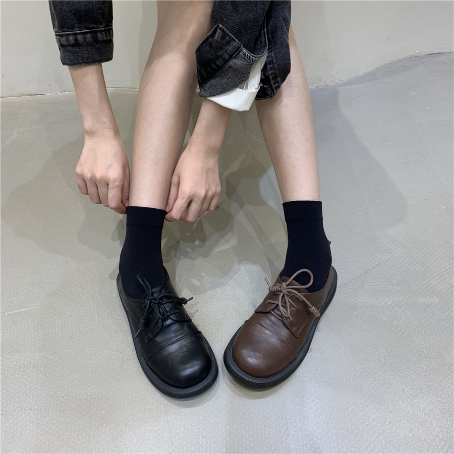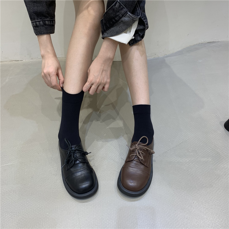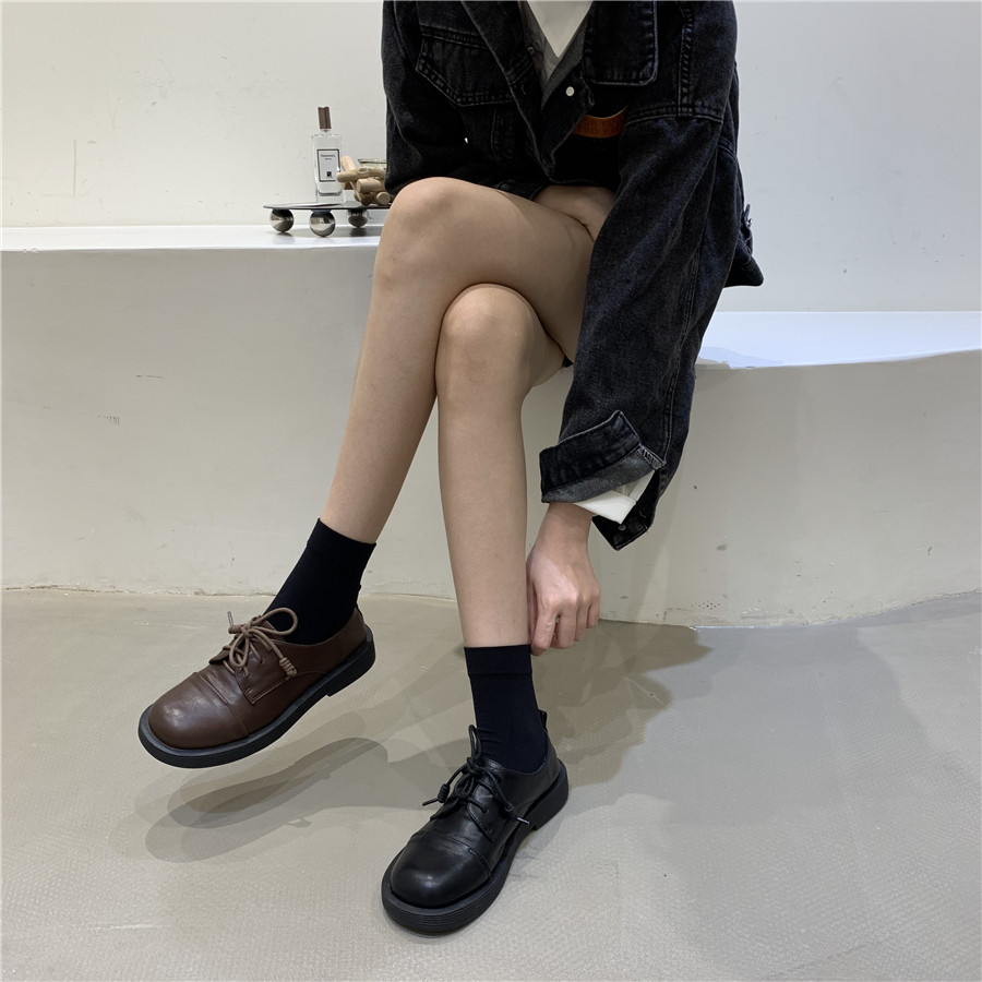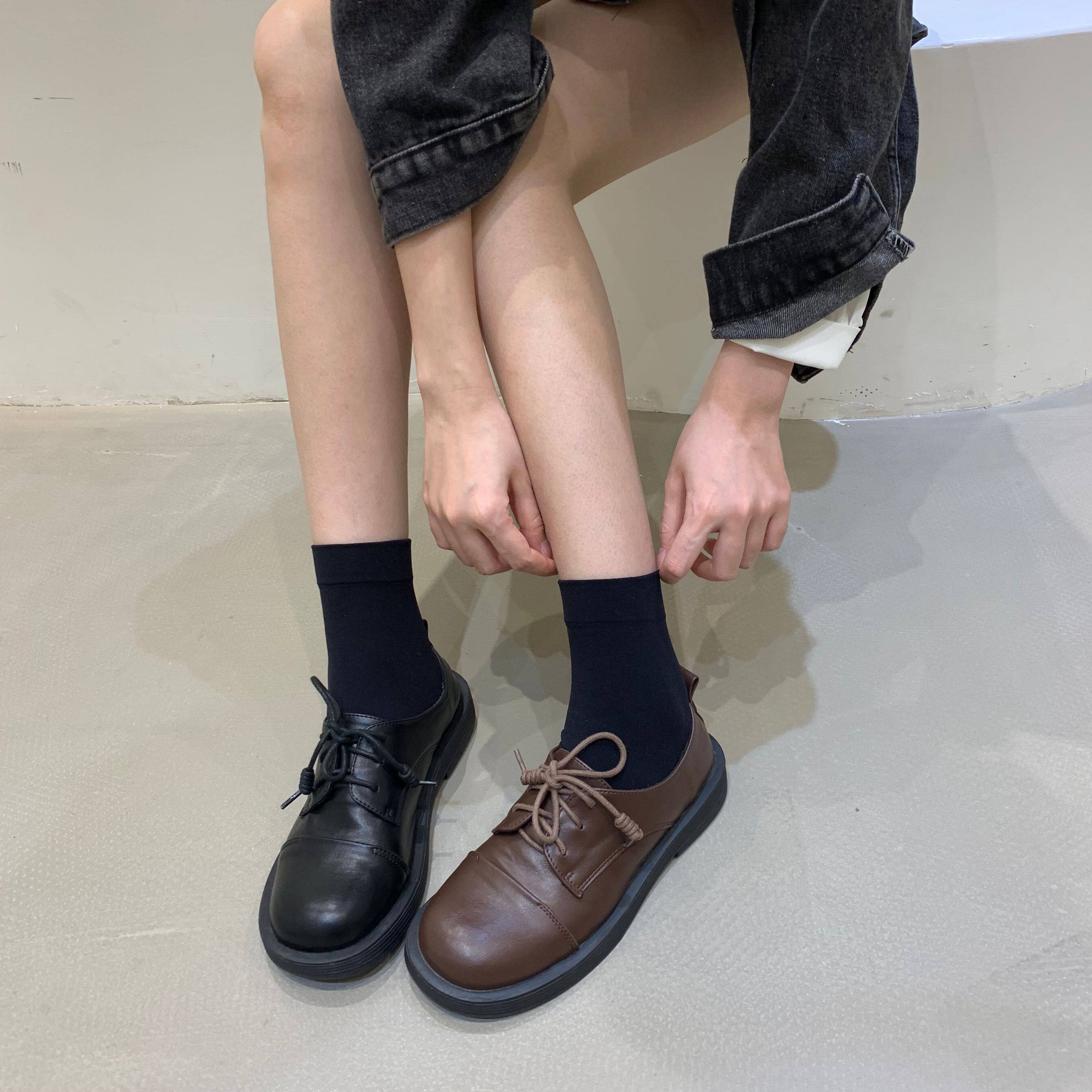 Обувь в английском стиле для кожаной обуви на платформе, демисезонные черные лоферы, в британском стиле, французский ретро стиль