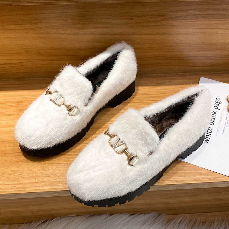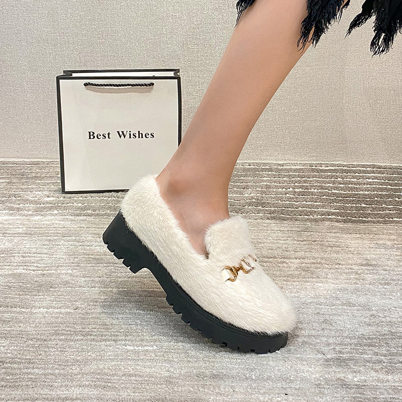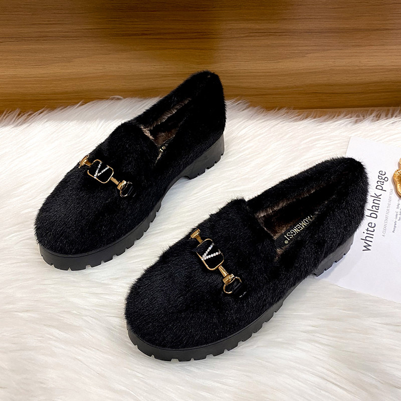 Женская обувь из кроличьего меха, осенняя и зимняя верхняя одежда, а также бархатные хлопчатобумажные туфли, туфли на одинарной платформе на толстом каблуке, шапочки, теплая женская обувь большого размера 41-43.