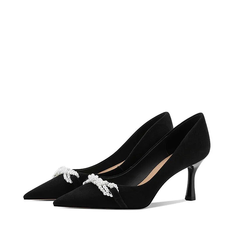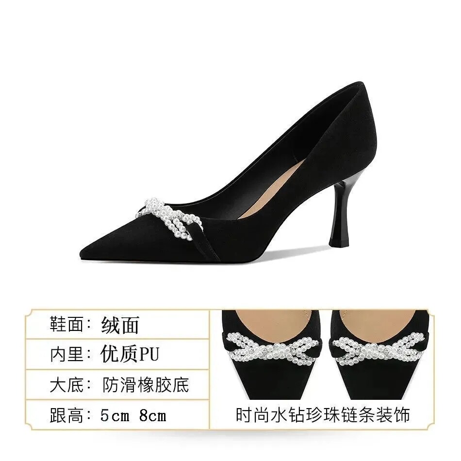 Рабочая черная обувь на высоком каблуке с заостренным носом, против усталых ног
