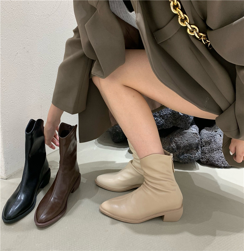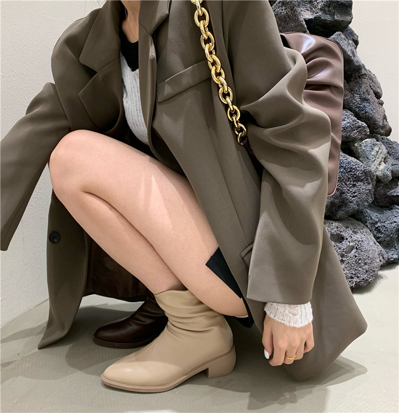 Джинсовая юбка, бежевые осенние универсальные короткие сапоги, средней длины