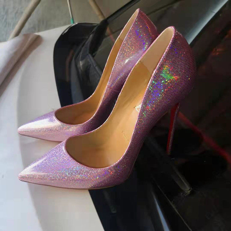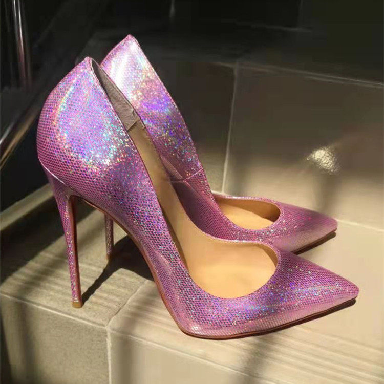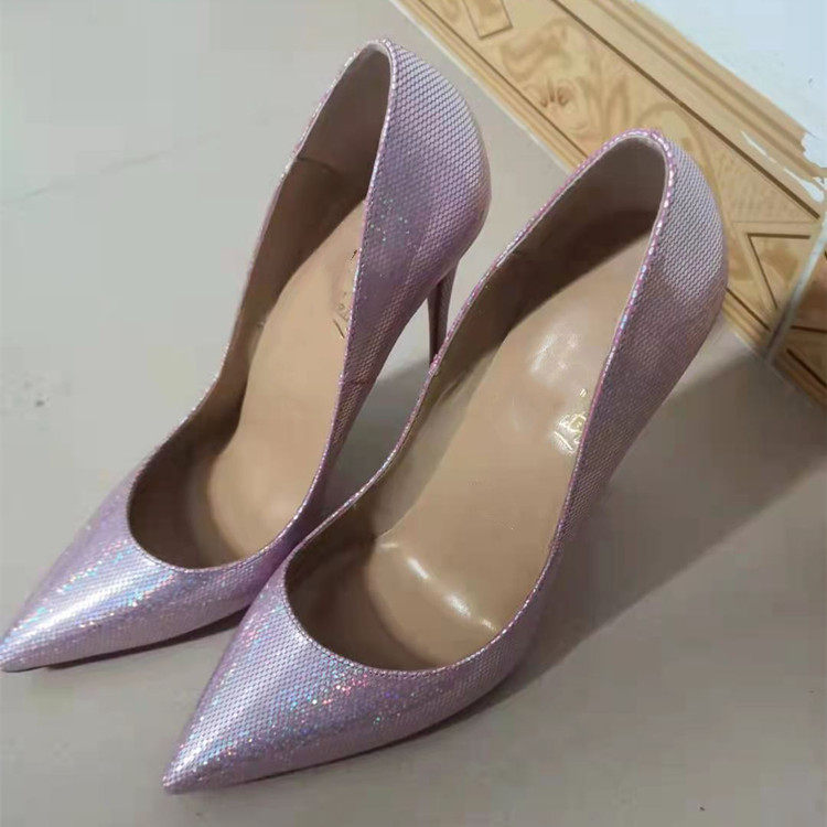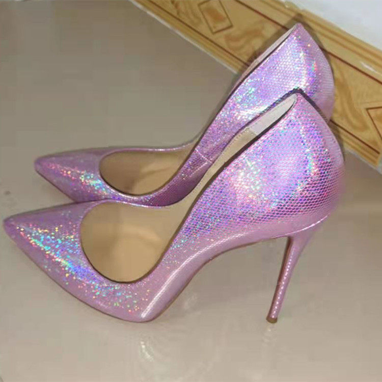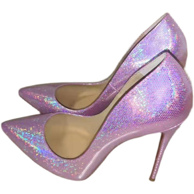 Серебряные сексуальные блестки для ногтей с заостренным носом на высоком каблуке с низким вырезом, очень большие свадебные туфли, коллекция 2023, 12см, большой размер