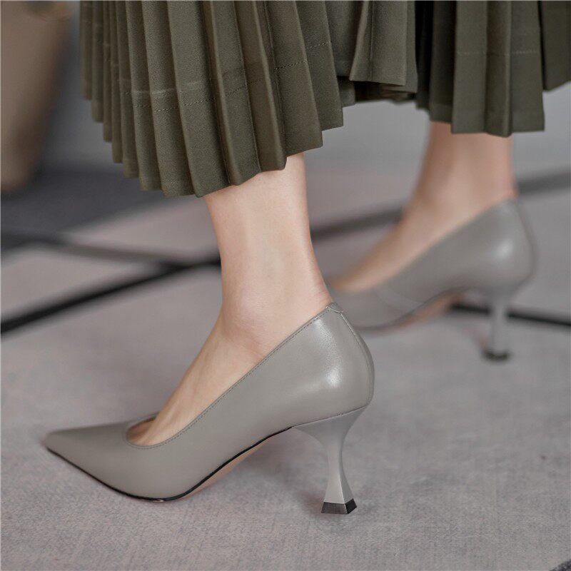 Кожаная универсальная рабочая обувь с заостренным носом на высоком каблуке, европейский стиль, 2023, воловья кожа
