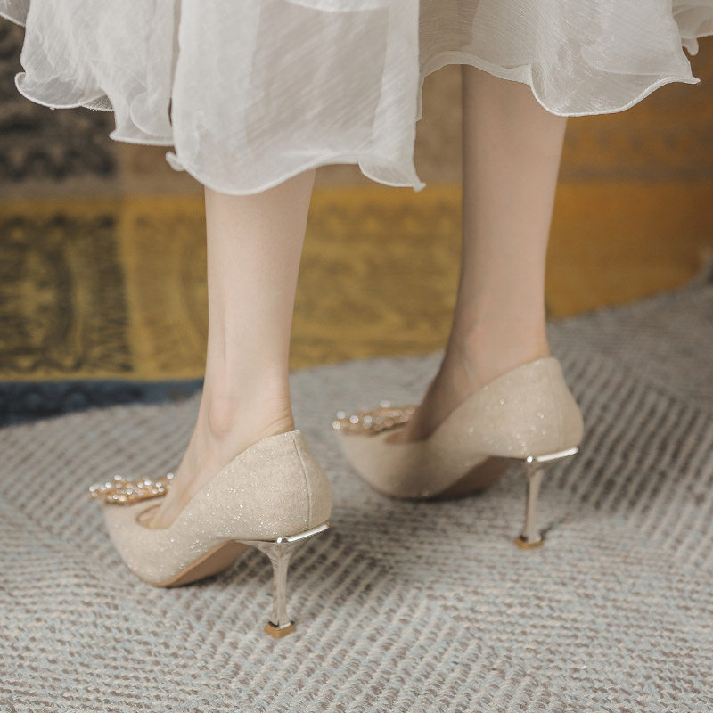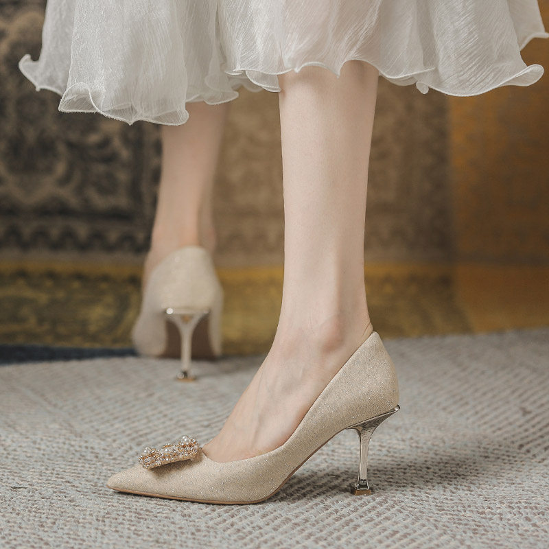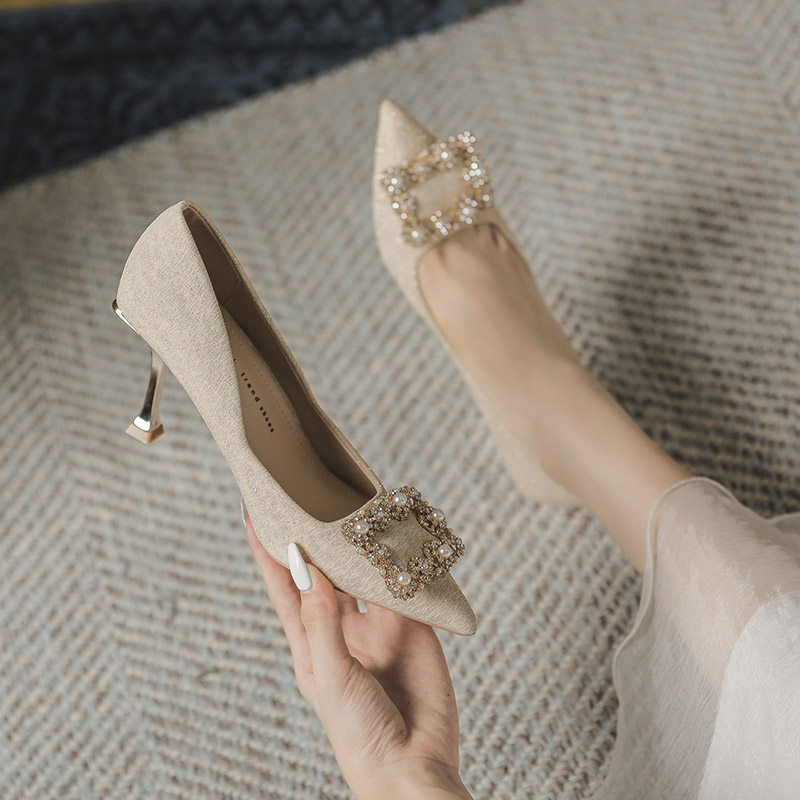 Обувь на высоком каблуке, весенние демисезонные свадебные туфли с заостренным носом, французский стиль, 2024 года
